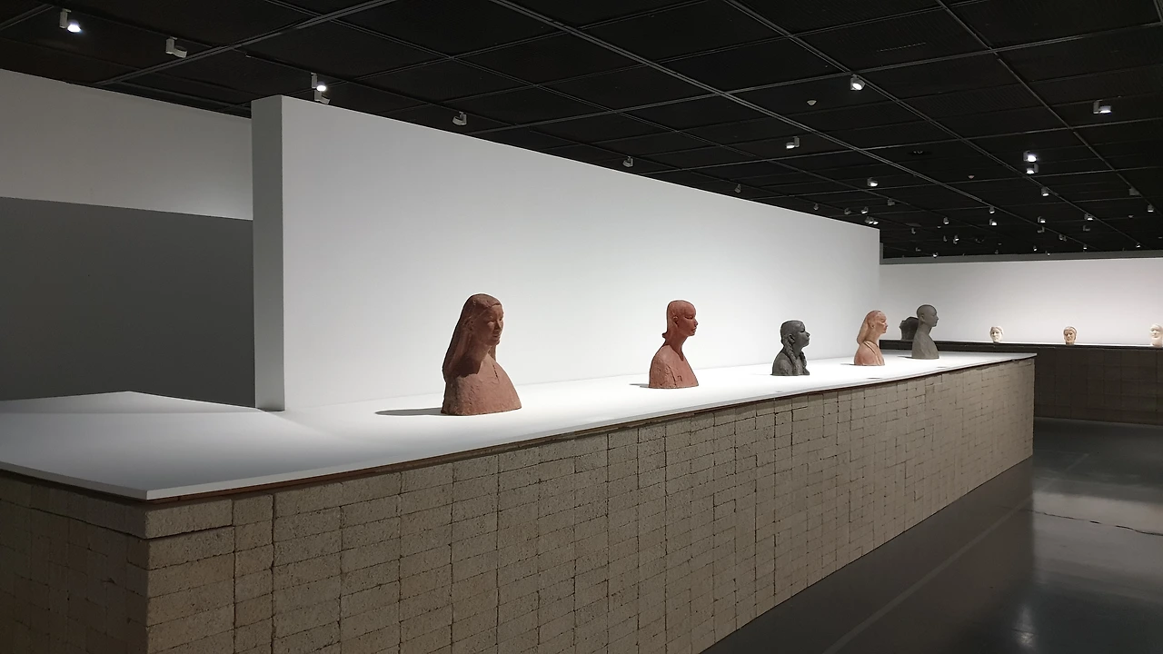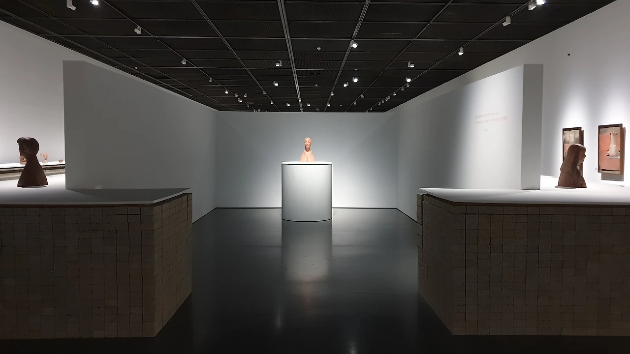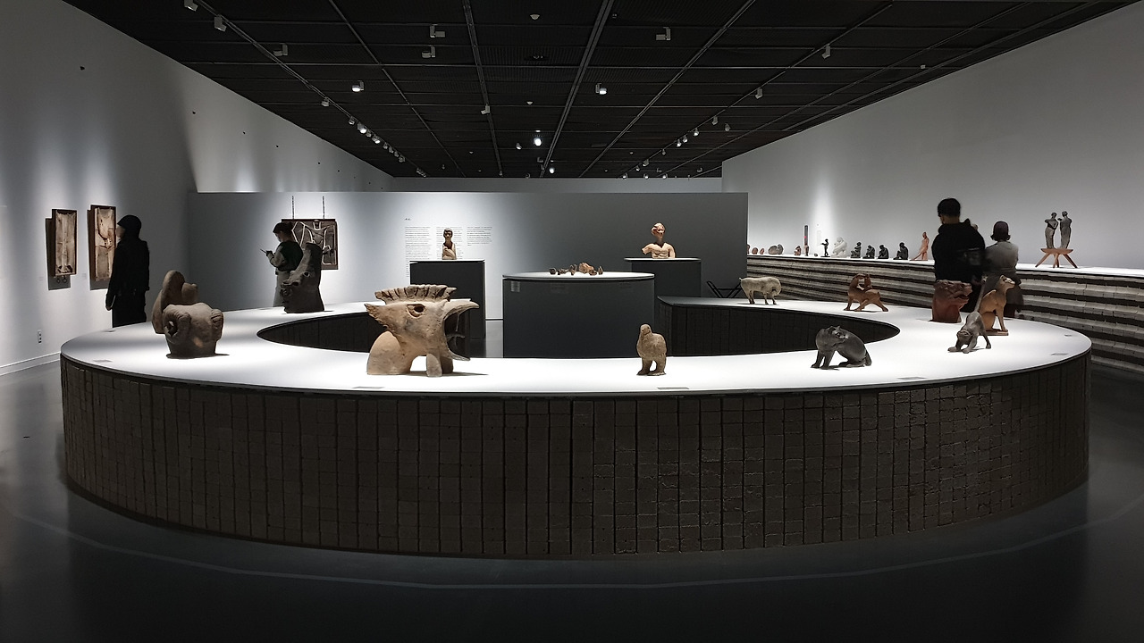 형태와 더불어 좌대들은 일반적인 그것처럼 MDF나 철제로 제작된 것이 아니라 인공적인 돌이라 할 수 있는 콘크리트 벽돌로 쌓아 만들었다. 이는 돌을 쌓아 만드는 우물과 가마의 건축적 특징을 전시장에서 간편하게 구현한 좋은 아이디어이다. 특히 벽돌은 권진규의 조각처럼 각 면의 형태가 다른데, 이를 활용해 좌대마다 벽돌의 다른 면을 노출시켜서 공간의 통일감을 유지하면서도 율동감을 주어 무척 인상 깊게 보았다. 수백 개의 벽돌로 만들어진 좌대는 건물처럼 보이는 느낌도 있었는데, 이러한 점이 동선을 딱딱하게 만든 것은 조금 아쉬웠다. 그러나 240여 점이나 되는 작품들을 한 공간에 전시하기 위해서는 기하 도형의 효율성이 필수 불가결하겠다는 생각도 들어서 감상에 크게 영향을 주는 부분은 아니었다.