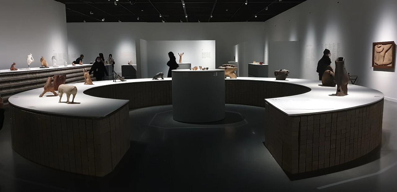 전시장의 중앙은 동물 조각들이 놓인 우물형 좌대와 여성 흉상이 놓인 가마형 좌대를 중심으로 구성된다. 그리고 양옆으로 벽에 거는 부조 작품과 여성상이 전시되어 있다. 먼저, 우물형 좌대는 시선이 낮고 원형으로 되어 있어서 움직임이 다채롭고 크기가 작은 동물 조각들을 360도에서 모두 감상할 수 있다. 관객은 먼저 원의 바깥면을 돌면서 동물의 정면을 감상한다. 이후 원의 중간에 뚫린 길을 따라 내부로 들어와 안쪽면에서 동물의 뒷면을 보며 조각의 전체 모습을 감상하게 된다. 반면, 가마형 좌대는 시선이 높고 사각형으로 되어 있어서 자세가 정적이고 크기가 큰 여성 흉상을 정면과 측면에서 감상할 수 있다. 우물형 좌대와 마찬가지로 관객은 사각 벽의 바깥면을 돌며 여성 흉상을 보고, 벽의 한 면에 뚫린 내부 공간으로 들어와 주요 작품을 좀 더 닫히고 조용한 분위기 속에서 감상할 수 있다.