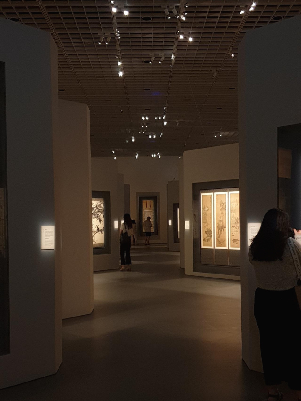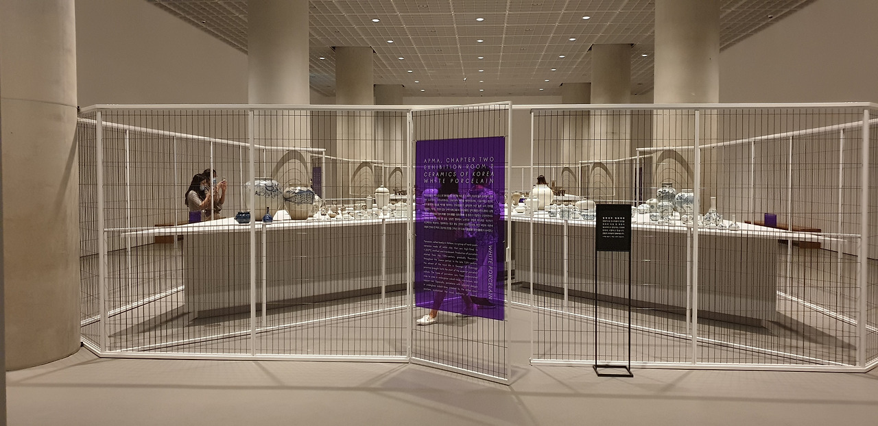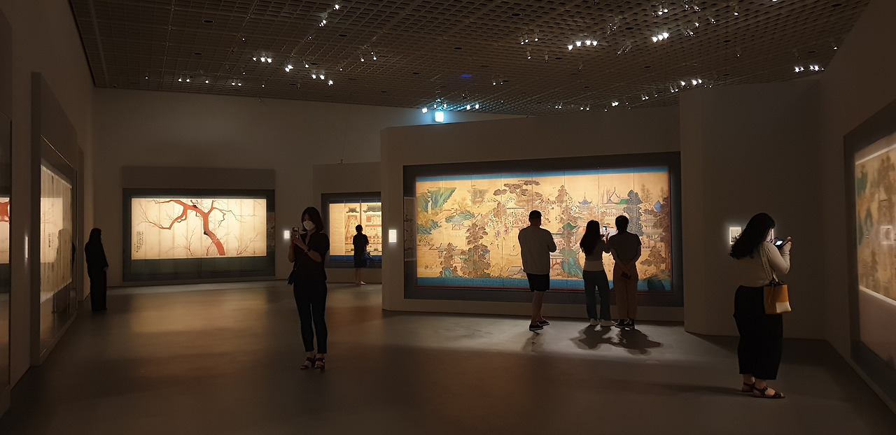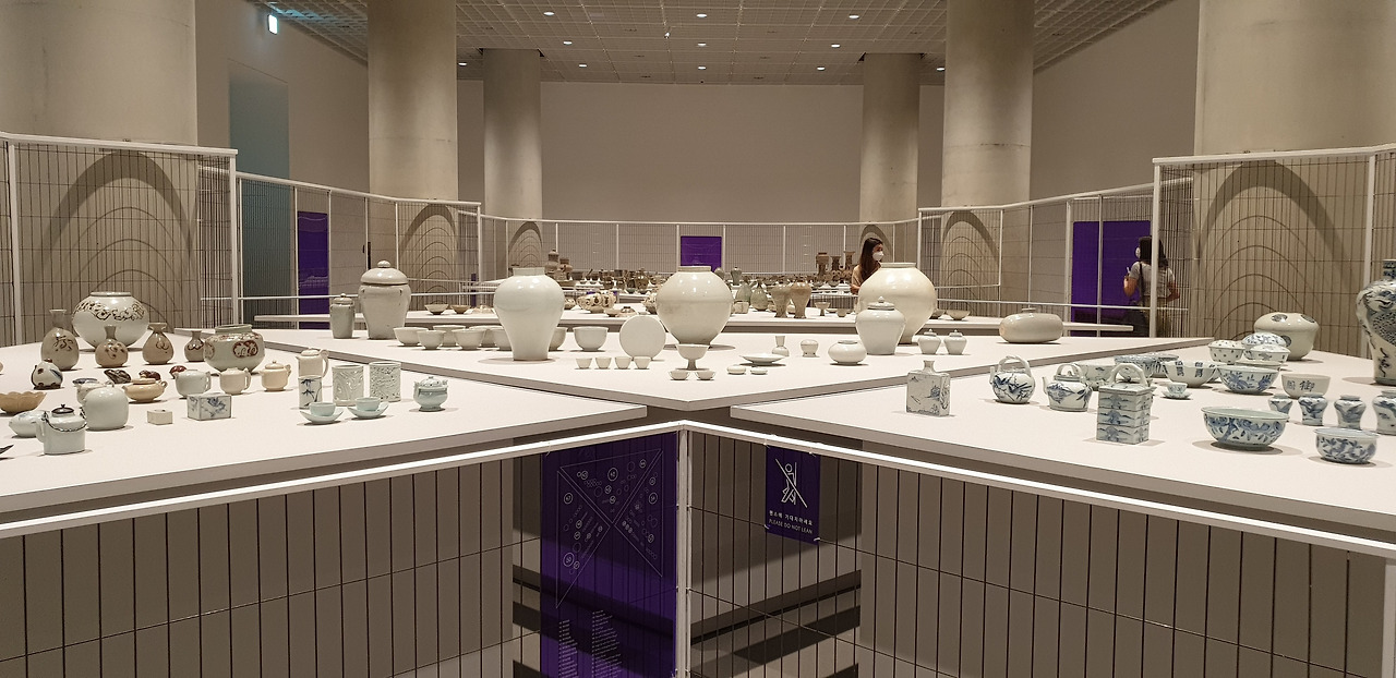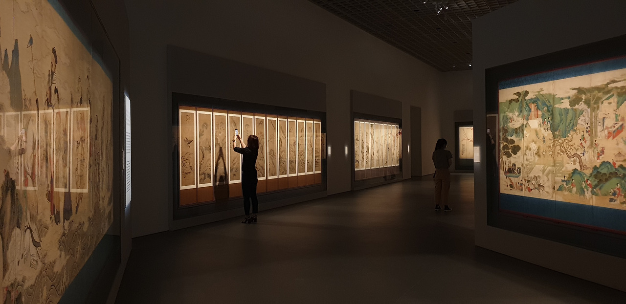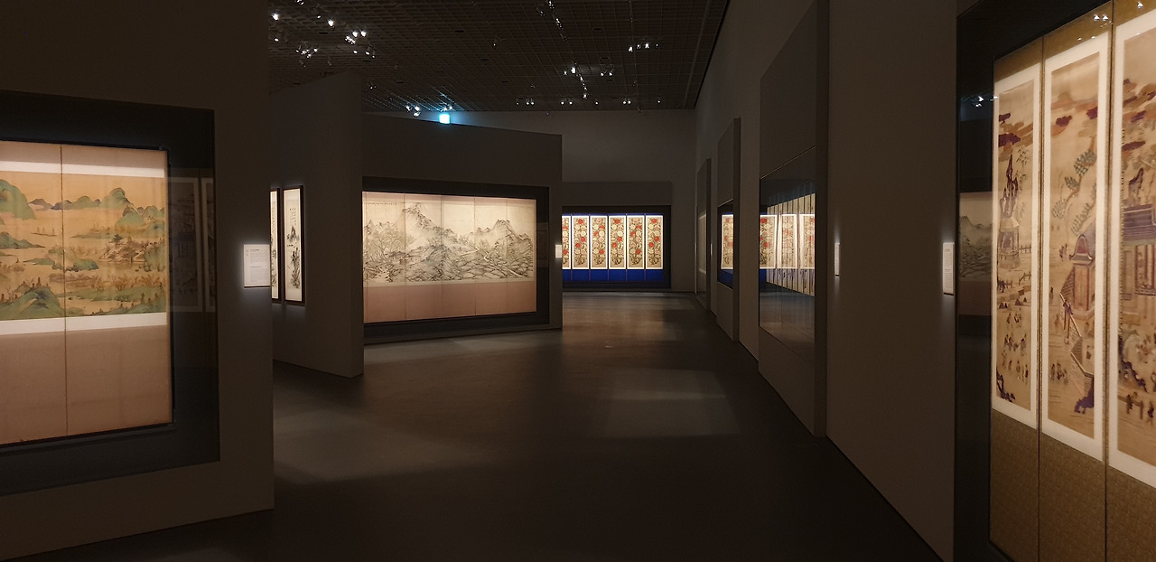 1(병풍)-2(도자)-3(찻잔)-4(가마)-5(생활 소품)-6(목재 가구) 순서로 전시가 진행되는데, 규모가 큰 주요 전시실 위주로 살펴보면 병풍 및 그림이 전시되는 1 전시실은 그림이 흐르는 듯 한 병풍의 형태에서 모티브를 따와서 거대한 전시실에 여러 갈래로 흐르는 길을 냈다. 작품의 규모나 분위기에 따라 길을 넓게, 좁게 조절해서 작품마다의 감상 간격을 자연스럽게 조절한 점이 인상적이었다.