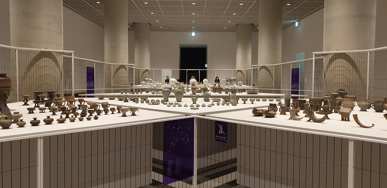 도자가 있는 2 전시실은 이번 전시에서 가장 감탄했던 공간이었다. 관객은 거대한 전시장을 가득 채운 삼각형 테이블 사이사이로 들어가 도자기의 모습을 여러 방향에서, 가까이 감상할 수 있다. 작품이 벽을 따라 놓이는 경우 회화나 부조가 아닌 이상 작품의 뒷면을 감상할 수 없다는 점이 아쉬운데, 이 점을 보완한 좋은 진열 방식이었다. apma에서도 상당히 공을 들였던 것인지 전시장 내의 설명글에 이 공간의 전시디자인에 대해 언급하고 있었다.