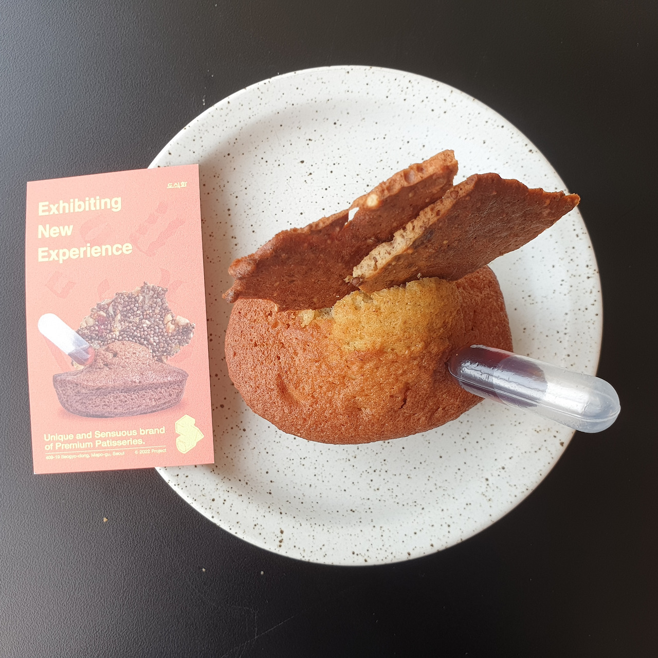 카페 도식화의 작품은 크게 퓨전 양식과 서구 양식으로 나뉘고, 미술관을 위해 도식화에서 특별히 제작한 작품 '도식화: 7월 9일'이 있다. 서구적인 맛은 다른 디저트 카페에서도 맛볼 수 있어서 다른 곳에서 보지 못한 퓨전 양식 중 간장 들깨 마들렌을 골랐다. 스태프분이 추천해주신 대로 마들렌을 반으로 가른 다음, 스포이드로 간장을 뿌려 먹었다. 들깨가 든 마들렌을 들깨 칩과 함께 먹어 고소하고, 간장의 짭짤한 맛이 마들렌의 달콤 고소한 풍미를 끌어내 주는 맛이었다.