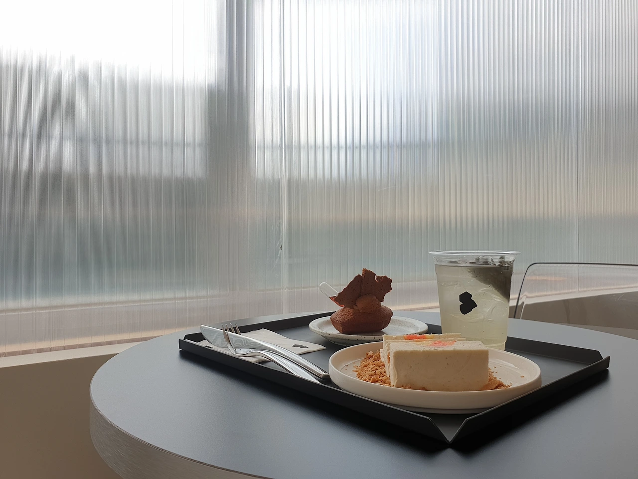 이렇듯 도식화를 이용하는 모든 순간을 미술관에서의 체험으로 치환할 수 있어 무척 흥미로웠다. 한 가지 아쉬웠던 것은, 주문한 메뉴를 직접 들고 이동하고 셀프바에 반납하는 전형적인 식음공간에서의 행위는 전시관 경험이라는 측면과 약간 맞지 않는다는 느낌이 들었다. 식음공간에서 음식을 서빙받느냐 셀프 서빙하느냐의 문제는 전시장에서 디자이너와 기획자가 심사숙고해 배치한 작품을 보는 것과 작품을 직접 벽에 걸어 감상하는 것의 차이처럼 느껴졌다. 마들렌이 작품이라면 그것을 받치는 식기와 트레이는 액자다. 그것을 가장 보기 좋은 형태로 배치하는 스태프, 즉 디자이너의 서빙이 더해진다면, 고객 입장에서 전시관으로서의 경험에 더 몰입할 수 있을 것 같다. 카페의 운영 방식에 있어서 전문가가 아니다 보니 셀프 서빙 방식이 틀렸다고 단언할 수는 없지만, 더 예민한 고객 경험을 위해서는 한 번쯤 고민해봐도 좋을 지점이라고 생각한다.