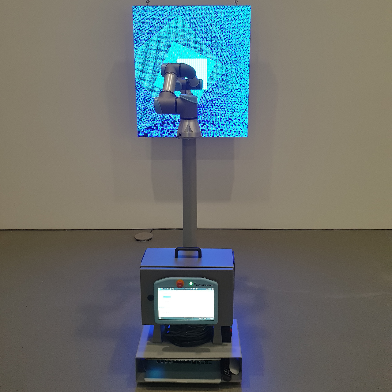 마지막으로 로비에 놓인 작품은 렌즈가 바로 앞 기계를 촬영하고 그것이 화면에 송출됨으로써 작품 하나에 공간, 작품, 관객이 모두 포함된다. 작품만으로 그 자체 하나의 완결된 전시를 만들 수 있다는 실험인 것이다. 이번 apmap은 야외 전시로 시작한 프로젝트를 실내 공간으로 끌어들이면서 전시를 이루는 공간, 작품, 관객 사이의 관계를 실험하는 성격이 강한데, 그런 실험적 성격을 압축해 보여주는 작품이 로비에 있다는 점에서 제 자리에 놓여있다는 안정감이 들었다.