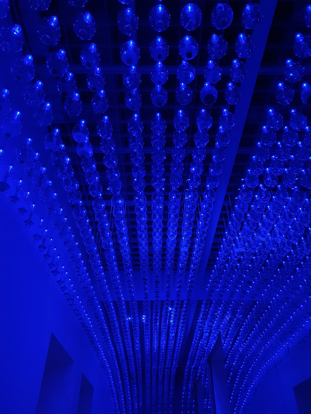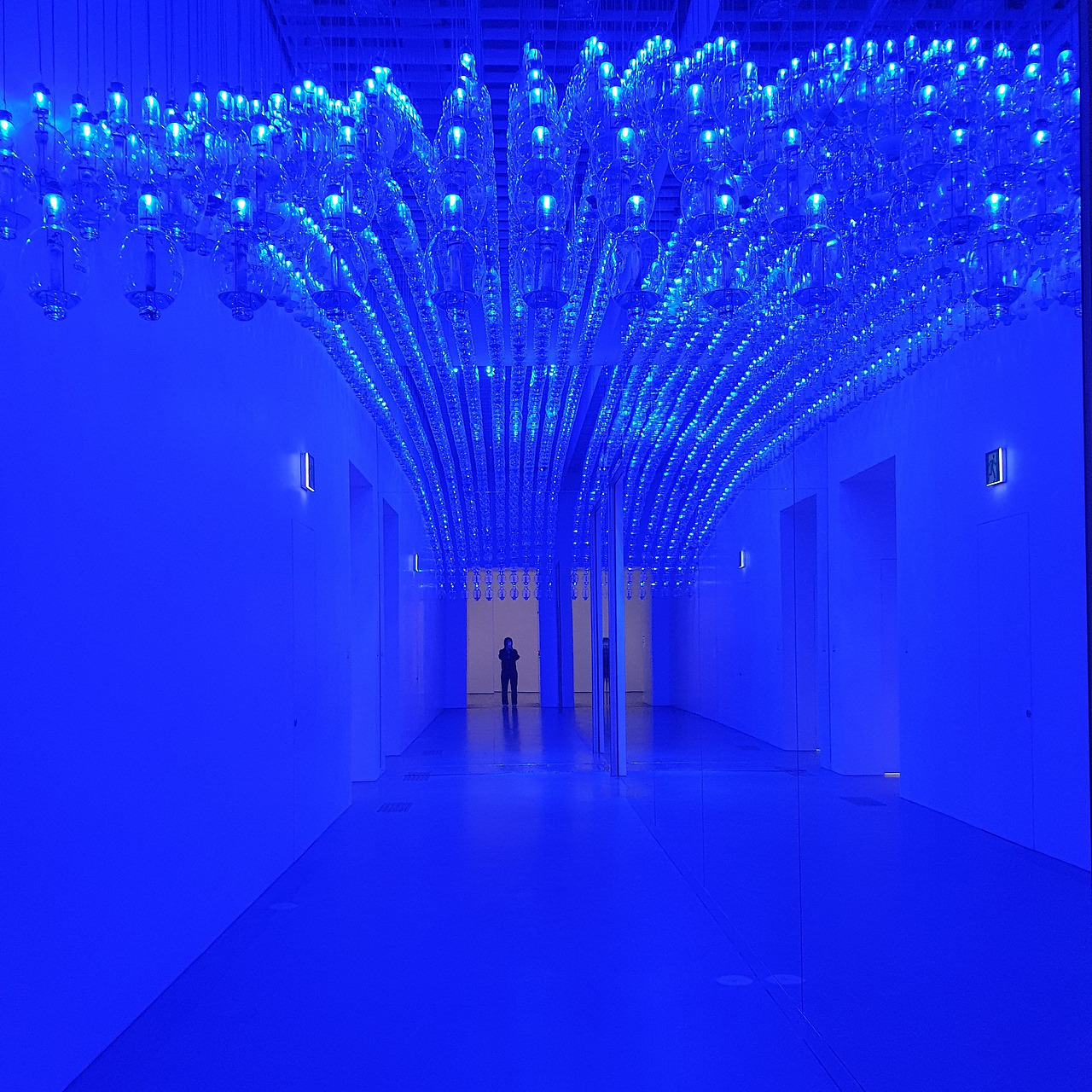 어림잡아 10m가 넘는 복도의 조명 작품은 높은 천장과 양옆의 거울을 활용해 판타지적인 공간감을 준다.