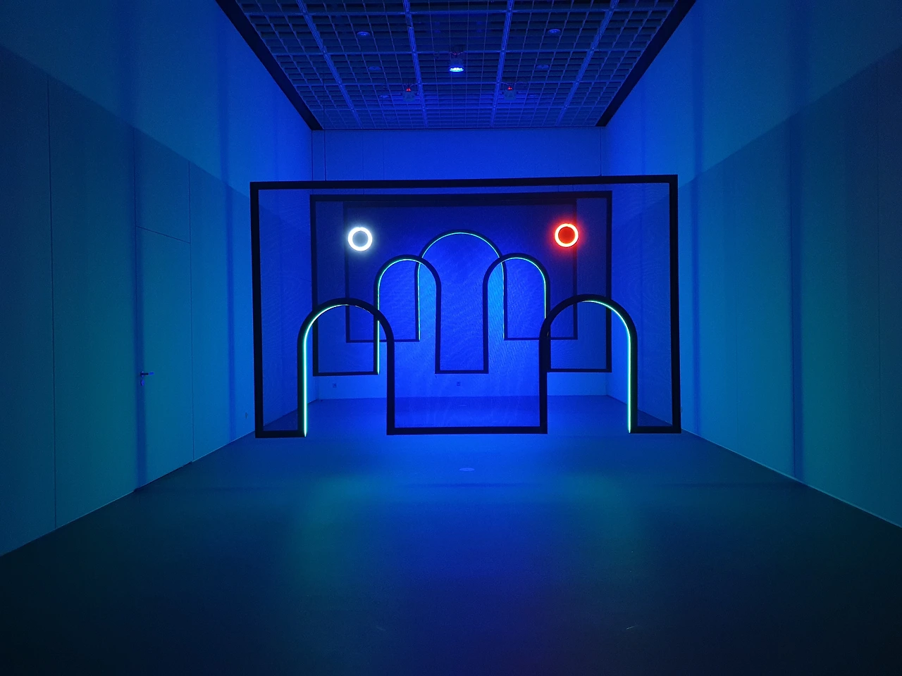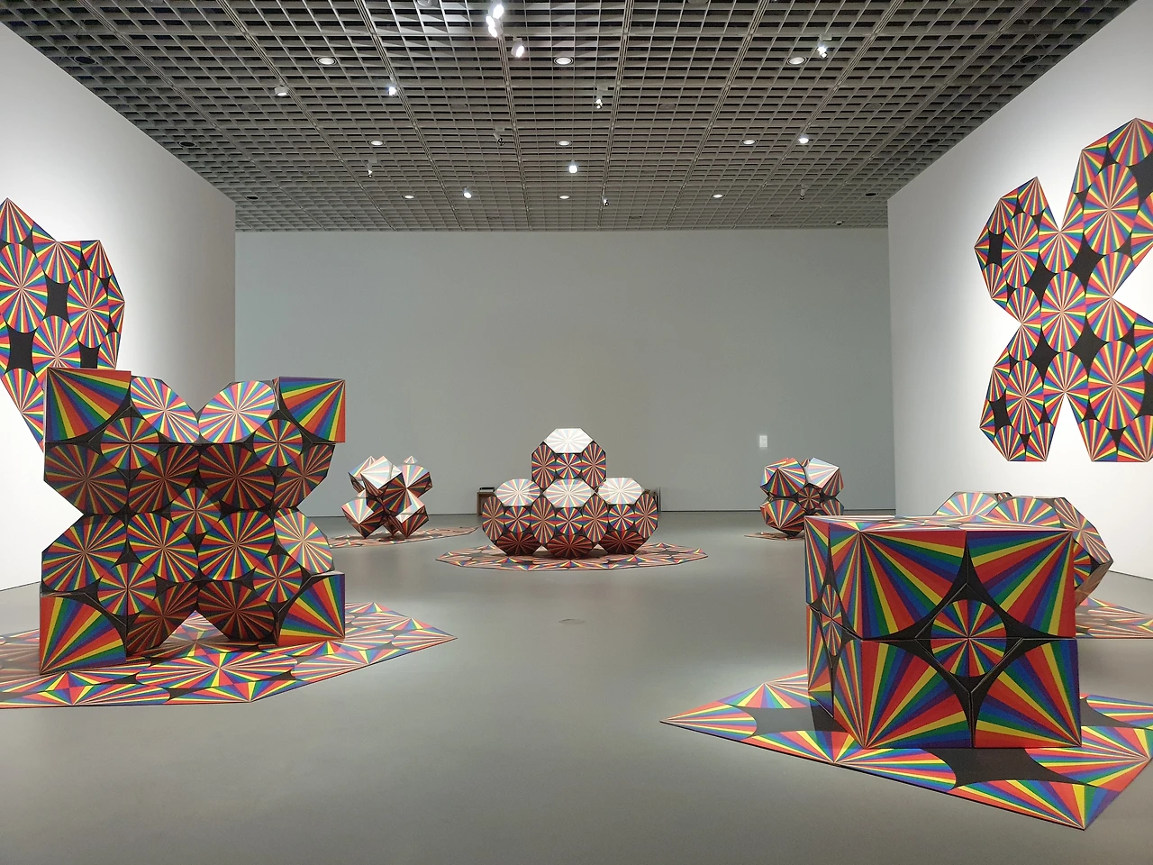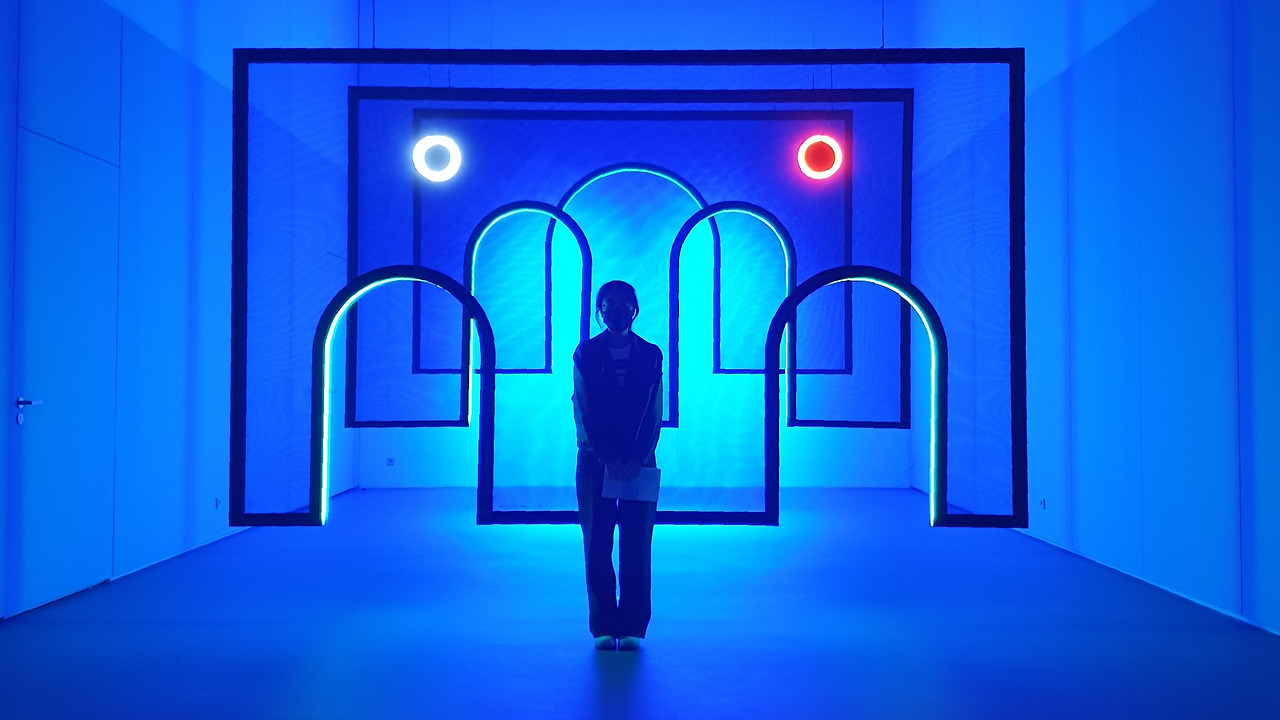먼저 교육실에는 조선시대 왕의 어좌 뒤에 놓였던 일월오봉도를 거리감 있는 공간으로 구현한 작품이 있다. 어좌에 왕이 앉듯 작품 가운데 관객이 자리함으로써 작품이 완성되도록 했다는 점이 특징이다.아모레퍼시픽미술관은 작품이나 공간 퀄리티가 좋으면서도, 기업 소속 미술관이다 보니 인스타그래머블한 측면을 신경 쓰는 부분도 보이는데 이번 전시에서는 이 작품에서 그런 면모가 가장 두드러졌다.
