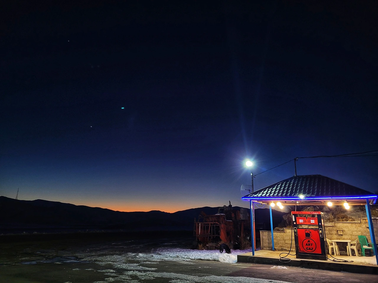 아르메니아 국경마을 Khnatsakh의 식사 자리에서 만난 동네 아저씨들은 내 부모 아내 아이 형제 친구 조국의 안녕과 건강을 하나씩 빌어주며 60도짜리 홈메이드 보드카 원샷을 권유했고, 결국 예레반으로 돌아오는 길, 내 기억은 구멍이 듬성듬성 생겨났다. 다음날 눈을 떠보니 내 핸드폰에 이 사진이 찍혀 있었다. E117 도로 위의 외로운 주유소.