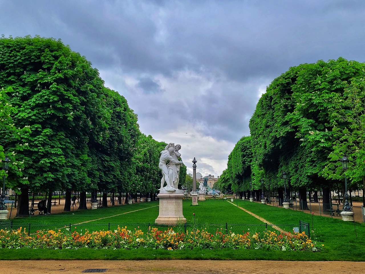 비가 내렸다 해가 떴다를 반복하더니 역시 뤽상부르 공원은 밀림으로 변해 있었다. 나뭇잎 크기가 성인 얼굴 크기와 비슷하다. 오늘도 하루종일 흐림이다. 1년이 지나도 파리 날씨의 변덕은 적응이 안 된다. 허나 그 변화무쌍함이 파리의 또 다른 매력인 건 조금씩 느끼고 있다. 화창한 날엔 구걸하는 거지마저 아름다워 보이지만, 에펠탑 꼭지가 가려진 오늘 같은 날엔 내면의 멜랑콜리한 예술가가 소환된다. 우울과 몽상이 딱 어울리는. 조울의 경계를 넘나들 때 예술적 생산력이 정점에 오르는 것처럼. 예술가들이 파리로 몰린 것도 이런 이유가 아녔을까. 울창한 나무와 먹구름을 배경으로 하는 뤽상부르 공원의 조각이 오늘따라 쇠락하는 로마 말기를 동경했던 데카당스 작품처럼 보인다.