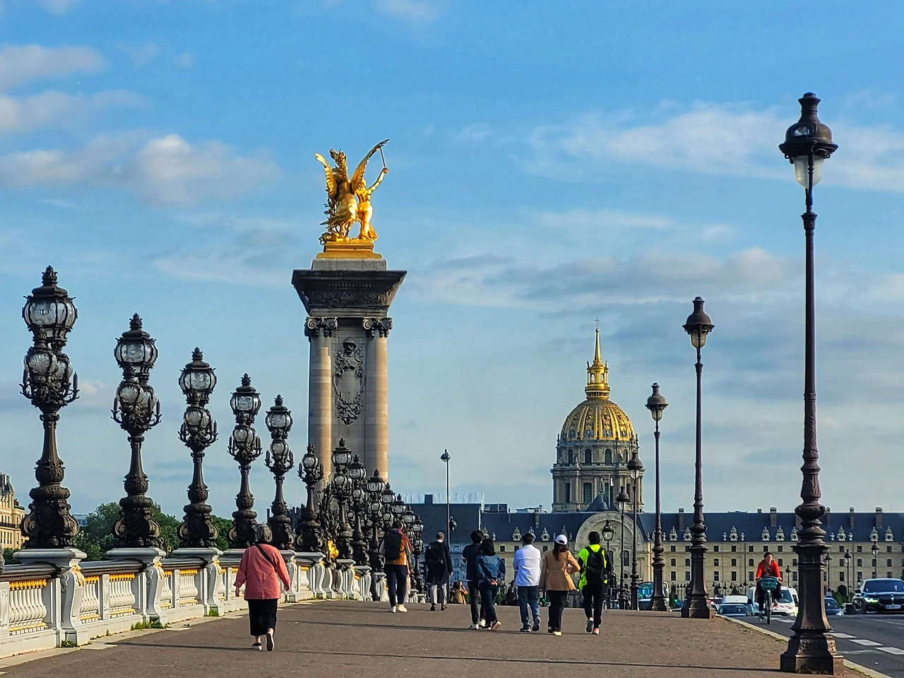 파리에서 내가(관광객이) 가장 좋아하는 한 컷의 이미지 중 하나는 알렉상드르 3세 다리 중앙에서 바라본 앵발리드 풍경이다. 앵발리드는 루이 14세 전담 건축가로 유명했던 쥘 아두앵 만사흐Jules Hardouin-Mansart의 작품이다. 1706년 퇴역 군인 혹은 부싱병을 위한 병원&예배당으로 지어진 이 건물의 핵심은 역시나 황금돔 지붕. 약 200년 뒤, 파리 박람회를 준비하며, 그랑 팔레, 프티 팔레를 신축한 프랑스의 당시 목표는 두 궁전과 앵발리드를 연결할 다리를 짓는 것. 특히 정면에서 앵발리드가 보일 것, 앵발리드의 황금돔 지붕과 어울리는 장식을 설치할 것 등의 조건을 충족시키기 위해 건축가들이 꽤 고생했다고 한다. 물론 그들의 개고생 덕분에 나는 조깅을 하며 두 개의 황금 장식을 감상하는 눈호강을 할 수 있게 됐다.