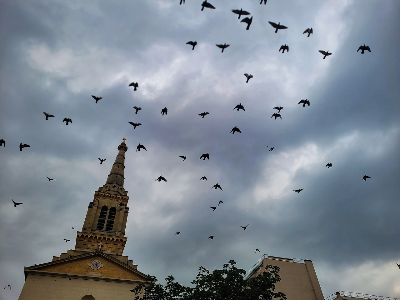 리스본에서 일주일쯤 지내고 나니, 가파른 언덕길, 울퉁불퉁한 자갈 포장, 무질서한 좁은 골목과 낡은 주택, 그리고 골목길 야외 테이블서 밥 먹는 사람들이 조금 익숙해지기 시작했다. 바꿔 말하면, 다시 돌아온 파리가 조금 새롭게 보인다는 것. 깔끔하고 평평한 길, 우아한 오스만식 주택들이 눈에 들어온다. 특히 카페의 야외 좁은 테이블에 다닥다닥 앉아서 에스프레소와 맥주를 마시는 사람들 모습은 리스본과 어울리지 않는 파리식 풍경. 무엇보다 가장 큰 차이는 날씨다. 염세적인 사람도 현재를 대책 없이 즐기게 만들어주는 리스본의 햇살이 파리엔 없다 그 대신 예술가의 창작열을 자극하는 멜랑콜리한 구름이 파리의 매력이다. 비가 쏟아지기 전, Saint-Jean-Baptiste of Grenelle 교회 풍경이 편안해지기 시작한 걸 보니 이제 파리에 좀 적응한 기분이다