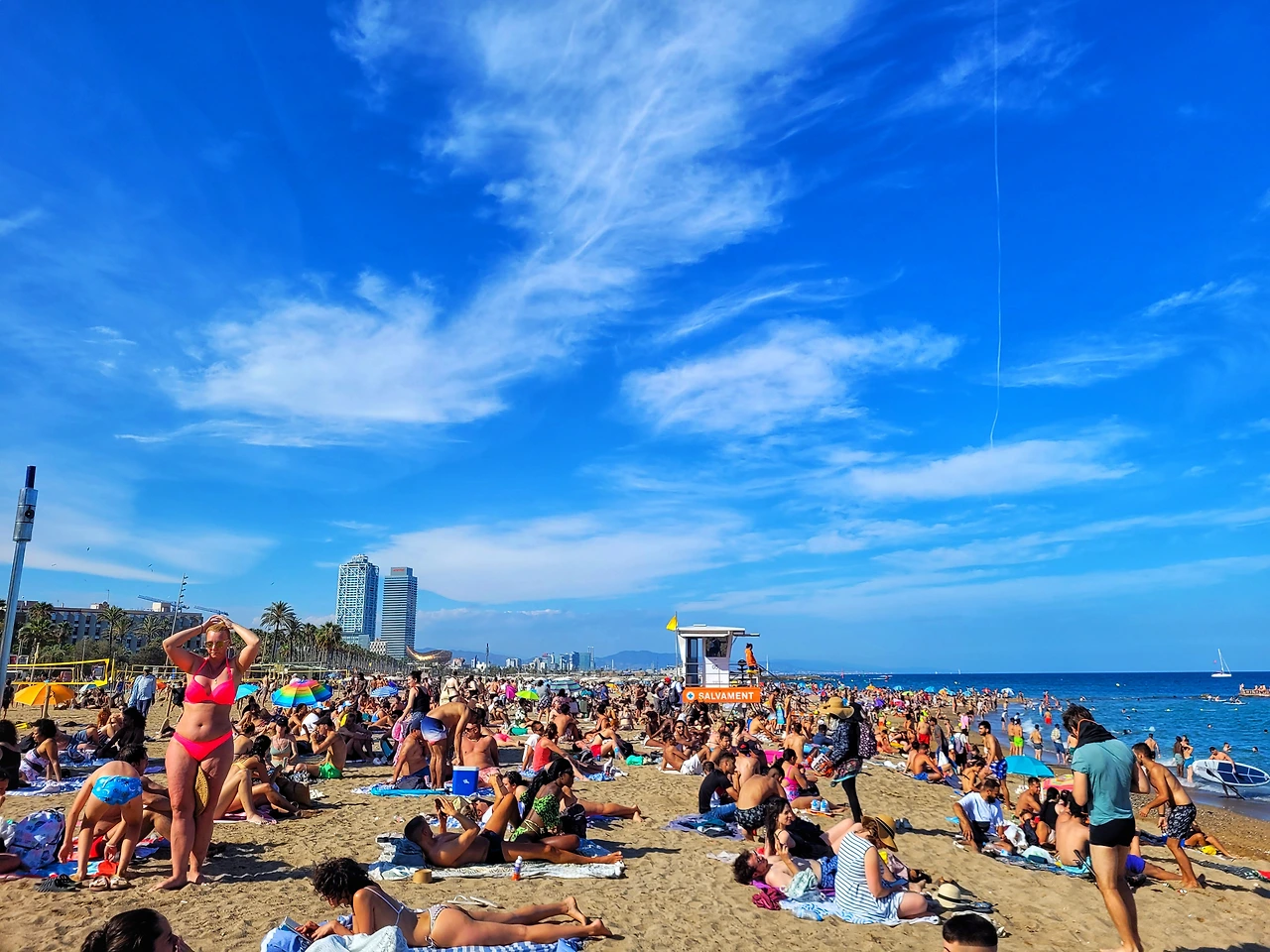 클리셰는 꼭 나쁜 것만은 아니라서, 가끔 사람을 편하게 만들어준다. 휴양지의 클리셰는 야자수, 푸른 바다와 하늘, 강렬한 태양, 모래사장 위에서 태닝 하는 사람들 정도일 텐데, 이 요소가 들어맞는 곳은 칸, 니스가 있는 프랑스 남부 코트다쥐르다. 하지만 비싼 데다, 요즘 같은 민족 갈등이 심할 때, 극우의 본산을 방문할 이유는 없다. 휴양지 클리셰에 다음으로 잘 어울리는 곳이 바르셀로나. 취항 노선도 많고, 사람들도 파리보다 친절하고 무엇보다 예전에 몇 번 와봐서 편했다. 문제는 바르셀로나가 여름 방문지로 좋다는 생각을 한 게 나만이 아니라는 점. 7말 8초 여름, '해운대 피서객으로 발 디딜 틈 없어' 뉴스 리포트 스케치에 나올법한 풍경이 눈앞에 펼쳐졌다. 좁은 틈 사이로 배구와 축구를 하는 사람마저 보인다. 클리셰는 깨졌다. 리스본도 관광객 폭증으로 몸살을 앓는다더니 바르셀로나도 상황이 비슷해 보였다. 포스트 코로나, 이제 누구든 인파 속에서 여유를 찾는 비법을 익힐 필요가 있어 보였다.