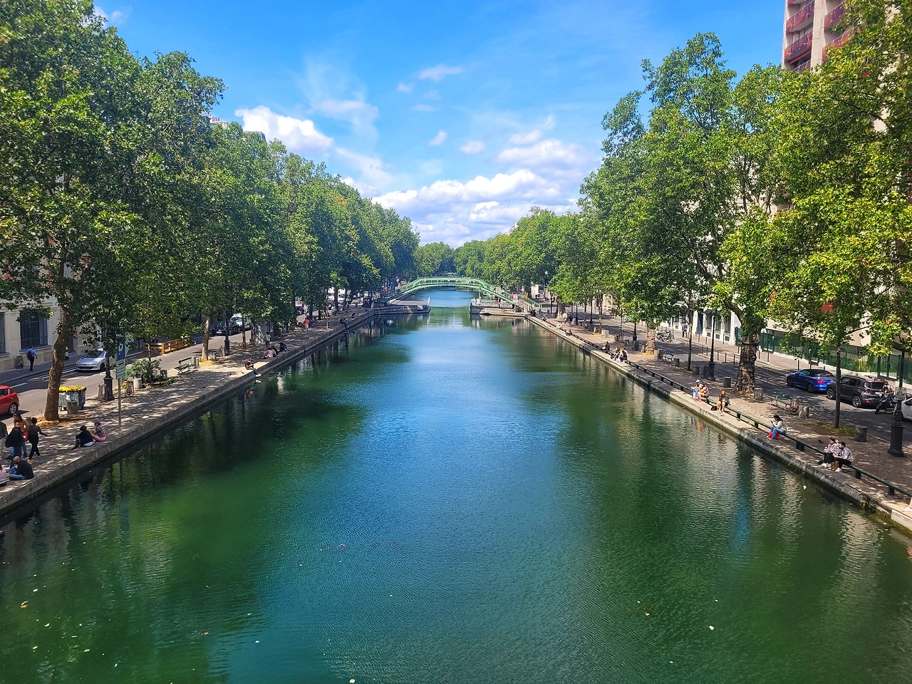 7월 하순은 파리 거주민들이 밖으로 나가고 관광객이 몰려오는 시기다. 개선문, 에펠탑 주변은 평소보다 많은 인파가 몰리지만 중심가를 살짝만 벗어나면 평소답지 않은, 한가한 파리를 볼 수 있다. (그래도 총합을 따져보면 나간 파리지앵 숫자가 많을 것 같다. 우리 집 1층 카펫집 아저씨처럼 간판에 '8월 쉽니다' 같은 걸 샵 윈도에 붙여놓은 곳이 많으니..) 평일 낮, 생마르탱 운하는 샌드위치로 점심을 먹는 파리지엥으로 꽤 붐비는 편이지만, 오늘은 날이 좋았음에도 한산했다. 장 피에르 주네 감독이 공들여 직부감 지미집 컷으로 물수제비를 하는 오드리 토투를 찍은 덕에, 이곳도 관광 리스트 하위권에 자리 잡았다. 지금은 파리지엥의 쉼터 역할 정도 하지만, 근대 파리의 상하수도 시스템의 출발로, 나폴레옹 1세 때 만들어진 곳이며, 물류 운반의 기능도 소화했던, 아주 실용적인 곳이었다. 나도 파리지엥처럼 즐기고 싶어 왔지만, 아이들이 도착해서 한 첫 질문은, 아빠 이제 우리 여기서 뭐해였고, 역시나 오래 머물 수 없었다.
