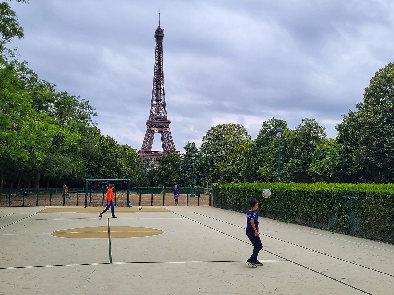 아비의 체력은 하루가 다르게 쇠퇴하는데 아들의 축구실력은 늘어간다. 몸빵으로 부족한 실력을 메우는 데도 한계가 있다. 어느 순간 아들은 아비를 깍두기 취급하더니 급기야 동생과 한 편 먹고 2대 1 경기를 하잔다. 자존심 상해 기를 쓰고 이겼지만, 뭔가 좀 초라 했다. 얼마 전 에펠탑 근처에 사는, 축구에 빠진 형을 소개받았다. 난 내심 저질스러운 내 체력의 민낯을 더 이상 안 봐도 된다는 생각에 반가웠다. 둘이 뛰게 하면 난 쉴 수 있겠지. 허나 변수가 있었다. 소개받은 형의 아버지 역시 조기축구 에이스 스트라이커였던 것. 어쩔 수 없이 아이들 못지않게 축구를 사랑하는 그 분과 함께 축구장 하프코트에서 2대 2 경기를 했고, 그날밤 햄스트링에 통증이 몰려왔다. 하지만 뭔가에 미친 에너지를 미약한 내 체력으로 거스를 수 없었고, 그 뒤로도 몇 번을 더 뛰다가, 오늘 에펠탑이 보이는 풋살장에서 근처를 오가는 뜨내기들과 비를 맞으며 4시간 넘게 축구를 했다. 발목도 허벅지도 아픈데, 아비의 고충도 모르는 아들 녀석은 약속 시간 30분 전에 나가 저리 훈련을 하고 있다. 에펠탑 보며 축구하는 것도 위안이 안 될 만큼 힘든 하루였다.