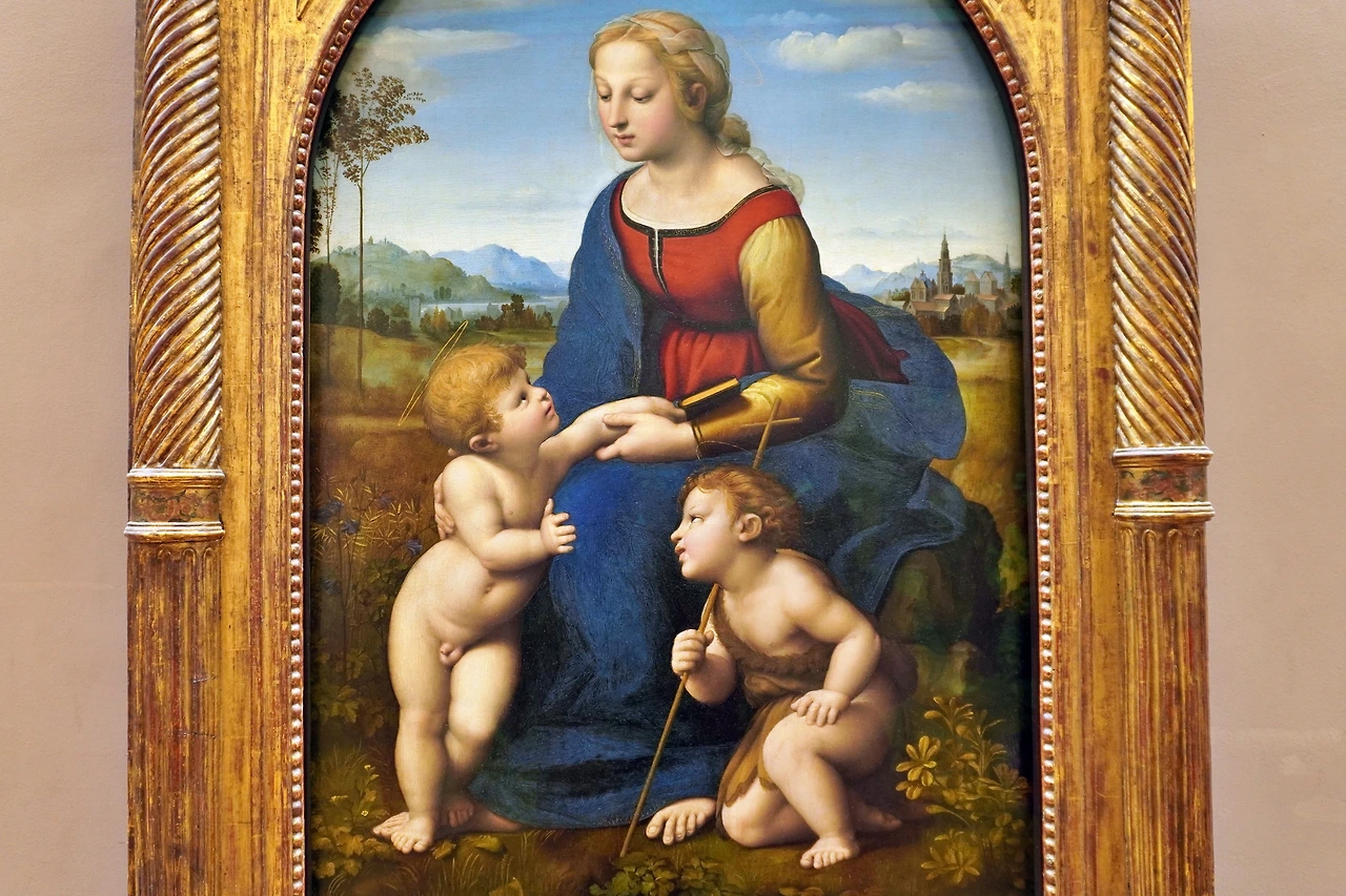 라파엘로의 위대함은 당대에 이미 인정받았습니다. 미켈란젤로와 함께 로마 교황청의 핵심 작가리스트에 올랐고, 교황 율리우스 2세가 요구하는 다양한 의뢰를 완벽하게 소화해 냈습니다. 레오 10세가 교황이 되었을 때, 성 베드로 성당을 신축하려는 교황청의 무리한 시도는 결국 교회의 분열을 가져왔습니다. 루터가 교황청의 면죄부를 강력하게 비난하고 있었지만, 교황은 이미 벌여놓은 사업을 중단할 수 없었습니다. 그리고 라파엘로를 성 베드로 성당 건축의 책임자로 임명했죠. 아무리 성격이 온화했던 라파엘로라고 해도, 성 베드로 성당을 짓는 일을 엄청난 부담으로 다가왔을 겁니다. 아무리 봐도 과로였던 거 같은데요. 결국 37세의 이른 나이에 사망하게 되죠. 만약 그가 좀 더 오래 살았다면, 인류에게 얼마나 더 많은 위대함을 남겨줬을까 싶은 생각을 하게 됩니다. 누군가 제게 루브르 박물관에서 단 하나의 그림을 집에 가져가 걸어놓을 수 있게 해준다고 한다면 (재판매 금지) 전 망설임 없이 라파엘로의 <아기 예수, 세례자 요한과 함께 있는 마리아>를 선택할 것 같습니다. 하루를 ‘아름다운 정원사’와 마무리할 수 있다면, 나름 큰 힐링이 될 것 같기 때문이죠.