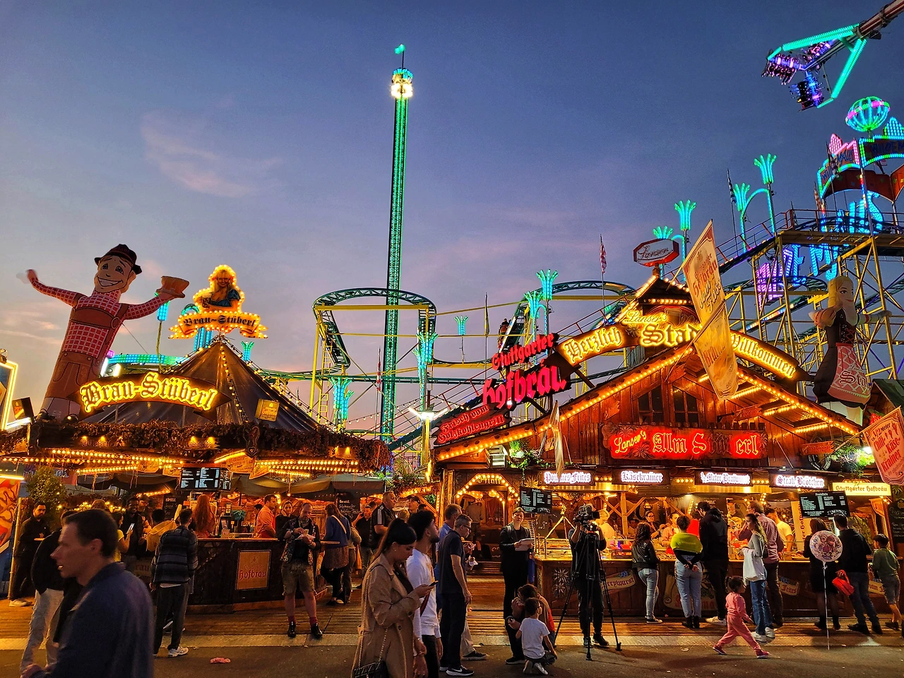 독일 맥주 축제하먼 옥토버페스트만 떠올리는데, 뮌헨 옆 슈투트가르트에도 비슷한 규모의 맥주 축제가 있다. 칸슈타트 축제. 우리로 치면 추석과 비슷하다. 농업축제로 시작됐지만 지금은 10개의 맥주 텐트를 중심으로 축제가 진행된다. 텐트 안에선 물론 맥주를 마신다. 제일 작은 사이즈가 1리터. 내가 찾은 날은 축제 마지막 날이라, 힙한 베를린 클럽 분위기로, 전통 지역 복장을 입은 사람들이 다음날 회사 출근도 잊은 채, 광란의 테크노 군무를 즐기고 있었다. 프랑스 사람들이 제각각 삼삼오오 무질서하게 파티를 즐기는 것과 달리, 독일은 노는 것도 일사불란하게 대오를 갖춰 즐긴다는 인상을 받았다. 물론 우리는 독일 스타일에 더 가깝고. BMW 본사가 있는 뮌헨의 도시 지명도가 한국에선 훨씬 높지만, 사실 슈투트가르트엔 벤츠, 포르셰 본사가 있다. 축구도 맥주 축제도 뮌헨에게 밀리는 슈투트가르트지만, 자동차 산업만큼은 한 수 위라고 해도 무방하다. 물론 자동차 산업 선두 도시라고 하기에 칸슈타트 축제의 놀이기구나 식당들 분위기가 미국 시골 유원지 느낌이 들었는데 날이 어두워지고 조명이 켜지니, 넷플릭스 드라마 기묘한 이야기(Stranger Things) 느낌의 레트로 분위기를 의도적으로 연출한 건 아닐까 싶은 생각이 들었다. 풍경이 나른하고 몽환적이었기 때문이다.