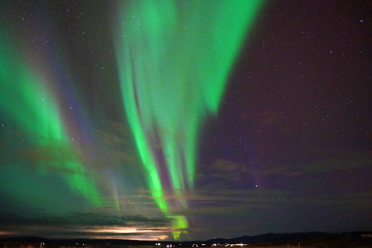 결국 아이슬란드를 찾는 사람들의 마음속 목표는 다 같지 않을까. 오로라. 아이슬란드로 오는 비행기에서 기장이 안내방송으로 잠든 승객들을 깨웠다. 손님 여러분 오른쪽을 보세요. 지금 오로라 현상이 나타나고 있습니다. 비행기는 순식간에 관광버스가 됐고 승객들은 오로라를 보기 위해 자리에서 일어났지만 승무원들은 제지하지 않았다. 비행기를 한순간에 관광버스로 만드는 힘이 오로라에 있다. 아내는 오로라만 볼 수 있다면 아이슬란드 여행 경비는 전혀 아깝지 않다고 말했다. 1번 국도를 따라가다 보면 허허벌판에 오두막들이 하나씩 있는데 우리가 묵은 숙소도 그런 곳이었다. 밤이 되자 칠흑같이 어두워졌고, 아이들과 야외 노천탕에서 몸을 녹이고 있을 때, 아내가 오로라 현상을 발견했다. 처음엔 긴가민가했다. 오로라를 보고픈 마음이 강해 모든 게 오로라로 보이는 건 아닌가 싶었는데 눈이 어두운 밤하늘에 적응하자 녹색빛이 좀 더 뚜렷해진 게 오로라가 맞았다. 오로라를 만난 것이다. 우리가 사진으로 본 이미지는 장노출로 색의 선명도를 극대화한 것이기 때문에 처음엔 좀 실망스럽다가도 저 녹색빛이 어디서 온 건가 생각해 보니 신기했고, 실제 원리를 찾아보니 더 신비로웠다. (우주에서 오는 입자라니..)