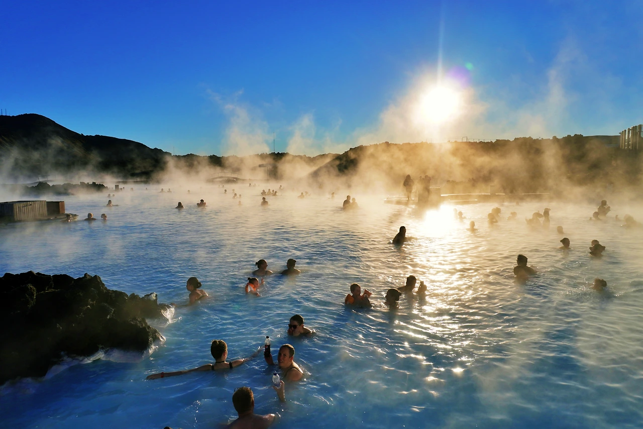 아이슬란드의 황량하고 척박한 풍경을 보고 감탄을 하고 난 다음엔 이런 생각이 든다. 이 사람들 뭐 먹고살지. 궁금해서 찾아보니 예상보다 관광업이 국가 경제에 차지하는 비중이 크다. GDP의 10% 이상을 차지하며 전체 수출품의 약 40%라고 하니, 조상이 주신 척박함을 나름 슬기롭게 잘 활용하는 셈이다. 생각해 보면 빙하에 접근하려면 경험 많은 가이드가 필수다. 빙하사이의 틈, 크레바스가 언제 나타날지 모르기 때문. 또한 빙하만큼 인기 있는 관광 상품이 온천이다. 섬 전체가 화산 지대에 위치해서 전력의 상당 부분을 지열로 충당하며, 땅만 파면 온천이 나올 뿐 아니라 스스로 물이 솟구치는 간헐천도 상당히 많을 정도다. 이 지열을 관광업으로 극대화한 곳이 공항 가는 길에 위치한 블루라군. 쉽게 말하면 온천 워터 파크라고 할 수 있겠다. 지열로 달귀진 온천 지대를 누구나 이용하기 편하게, 대신 비싼 가격에 제공하는 서비스며, 공항 근처라 밤 비행기를 이용하는 관광객의 필수 코스가 됐다. 워터파크답게 모든 게 살벌하게 비싸지만 무료로 나눠주는 머드팩을 바르고 뜨거운 노천탕에서 생맥주를 마시는 경험은 한 번쯤 누려볼 만한 사치다. 나의 아이슬란드 마지막 일정 역시 블루라군이었다.