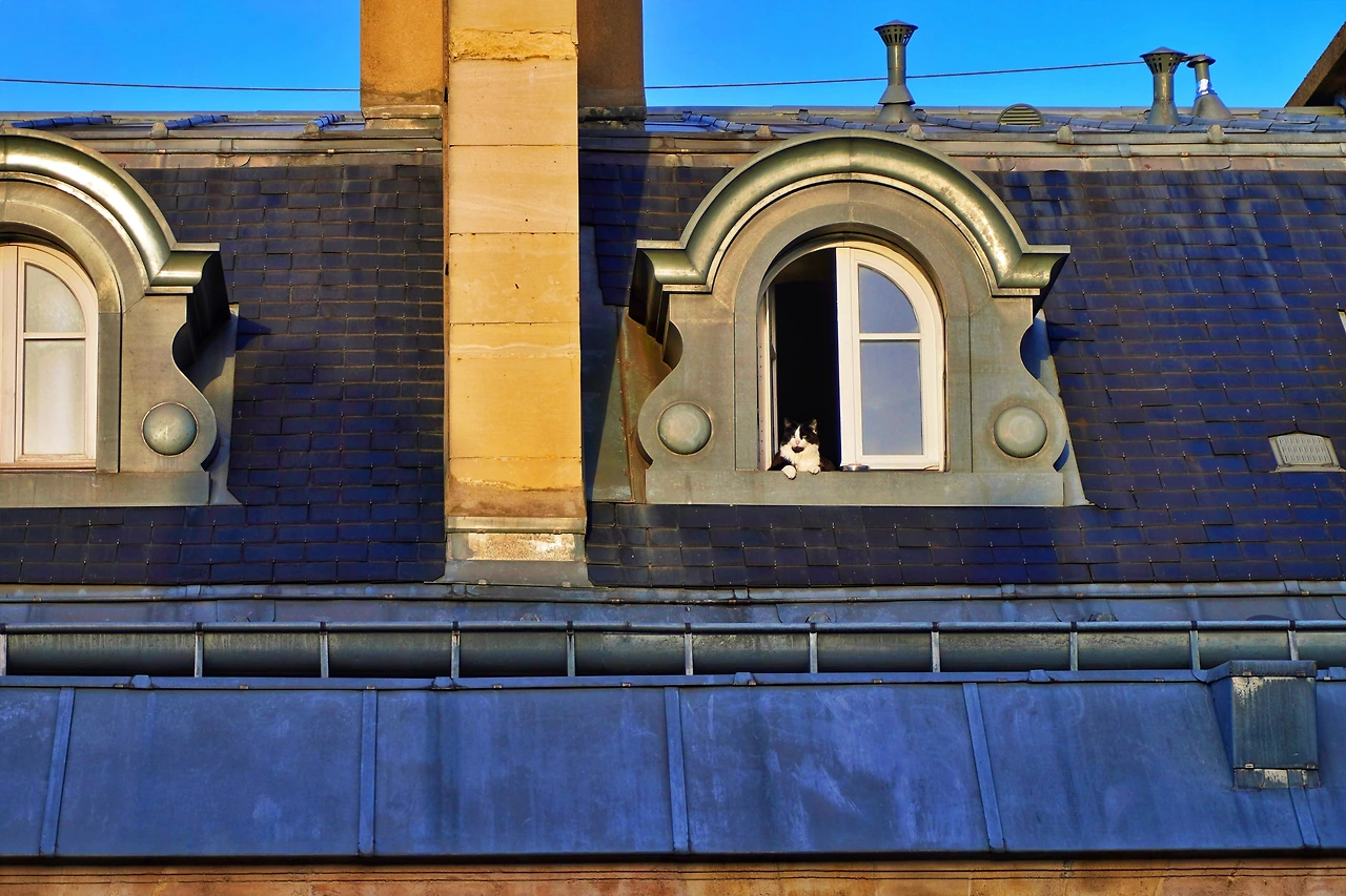 이번주 일요일 주간 일기예보를 보며 가을이 끝났음을 실감했다. 지난주도 비와 맑음이 퐁당퐁당 이어지더니 이번주는 연일 비와 흐림이다. 처음엔 멋모르고, 그다음 해엔 아주 혹독하게 파리의 겨울을 보냈었다. 그러다 보니 올해는 흐리고 비 오는 날씨가 2-3일만 이어져도 벌써 겨울인가 싶은 두려움이 몰려왔다. 사실 수요일밖에 안 됐지만 체감상 2주 정도 해를 못 본 것 같았는데 오늘 출근길에 파란 하늘이 모습을 드러냈다. 가을이 잘 버텨주고 있구나 싶었다. 광합성을 위해 발코니로 나갔더니, 이 소중한 순간을 만끽하는 게 나 혼자는 아녔다. 맞은편 건물 다락방의 고양이가 오전 일과는 일광욕이 전부라는 기세로 맞은편 인간의 사진 촬영에도 아랑곳 않고 망중한을 즐기고 있었다. 검정고양이는 파리의 상징이며, 예술가의 자유를 의미하는 이미지인데, 겨울 초입에 다락방에서 해 쬐는 고양이를 보고 있으니, 여기가 파리 맞구나 하는 생각이 들었다. 물론 나와 고양이의 짧은 행복은 먹구름과 함께 곧 사라지고 말았지만.