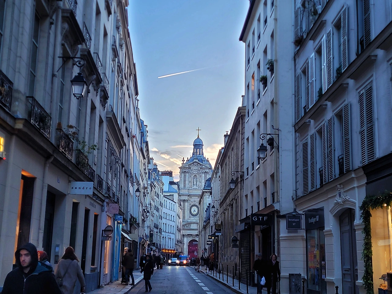 마레지구를 동서로 가로지르는 프랑 부르주아 거리. 프랑 부르주아는 중세시대에 너무나 가난해서 세금을 면제받은 사람을 지칭하는 말이었다. 1350년대부터 파리의 도성 안에 사는 극빈층이 이곳에 거주하기 시작했는데, 지금은 물론 파리에서 가장 임대료와 월세가 비싼 곳 중 하나가 됐다. 프랑스인을 사귀던 한 한국 친구가 코딱지만 한 남자 친구의 방을 방문하고 진심으로 그를 동정했었다는데, 사실 이는 마레지구에 사는 친구의 재력에 감탄했어야 하는 상황이었던 것. 또한 프랑 부르주아 거리는 파리에선 드물게 2차 대전 당시 독일의 폭격을 받아 건물 상당수가 파괴됐고, 전후에 대부분 복원됐다. 다시 지어진 건물엔 럭셔리는 아니지만 작고 화려한 가게들이 들어섰다. 물론 중세의 거리답게 골목은 좁고 늘 공사 중이라 번잡하다. 프랑 부르주아 거리와 쎄비네 거리가 교차하는 지점에 서면 멀리 생폴 교회가 모습을 드러내는데, 이곳은 알렉상드르 3세 다리에서 바라본 앵발리드 이미지 다음으로 내가 좋아하는 풍경이다.