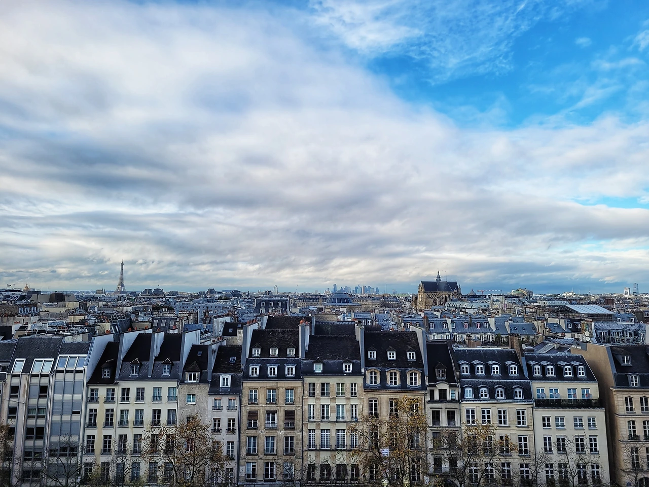 주말부터 파리답지 않게 기온이 영하 언저리로 떨어졌다. 파리에 놀러 온 장모님은 본인은 몸에 열이 많다며 얇은 외투를 입고 나가시더니, 돌아와서 파리 추위의 불쾌함을 호소하셨다. 파리에 눈이 내렸다는 얘기가 sns에 보였지만, 눈에 대한 간절함이 만든 착시가 아닐까 싶었다. 물론 눈이 금방이라도 내릴 것 같은 날씨였다. 그러더니 오늘 아침부터 비가 내리기 시작했다. 어제 로댕 미술관 갔다 작은 연못이 얼었던 걸 본 애들은 간절히 눈을 바랐지만, 하루 종일 비만 내렸다. 파리가 잘 보이는 부감샷이 필요해서 어디를 갈까 고민하다 퐁피두 센터로 향했다. 5층에 오르자 마치 나의 부감샷을 기다렸다는 듯, 날이 개기 시작했고, 심지어 해까지 떴다. 이렇게 추위가 좀 가시나 싶었다. 퐁피두 센터는 일종의 문화센터기 때문에 전시실에 들어가는 게 아니라면 누구나 무료입장이 가능하디. 그래서인지 옆에 술 냄새 엄청 나는 젊은이가 다가와 자긴 아시아를 사랑한다며 귀찮게 굴었다. 베트남 음식 예찬을 늘어놓는 그 친구에게 허그 한번 해주고 현장에서 철수했다. 파리에서 한때 가장 더럽고 위험했던, 아름다운 마을 보부르 Beaubourg엔 여전히 낮부터 술에 취한 청년들이 많았고, 날이 어두워지자 텐트들이 하나 둘 세워지며 거대한 텐트촌이 만들어졌다. 보부르의 유구한 전통은 오늘까지 계속 이어지고 있었다.
