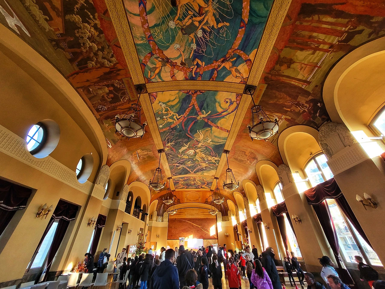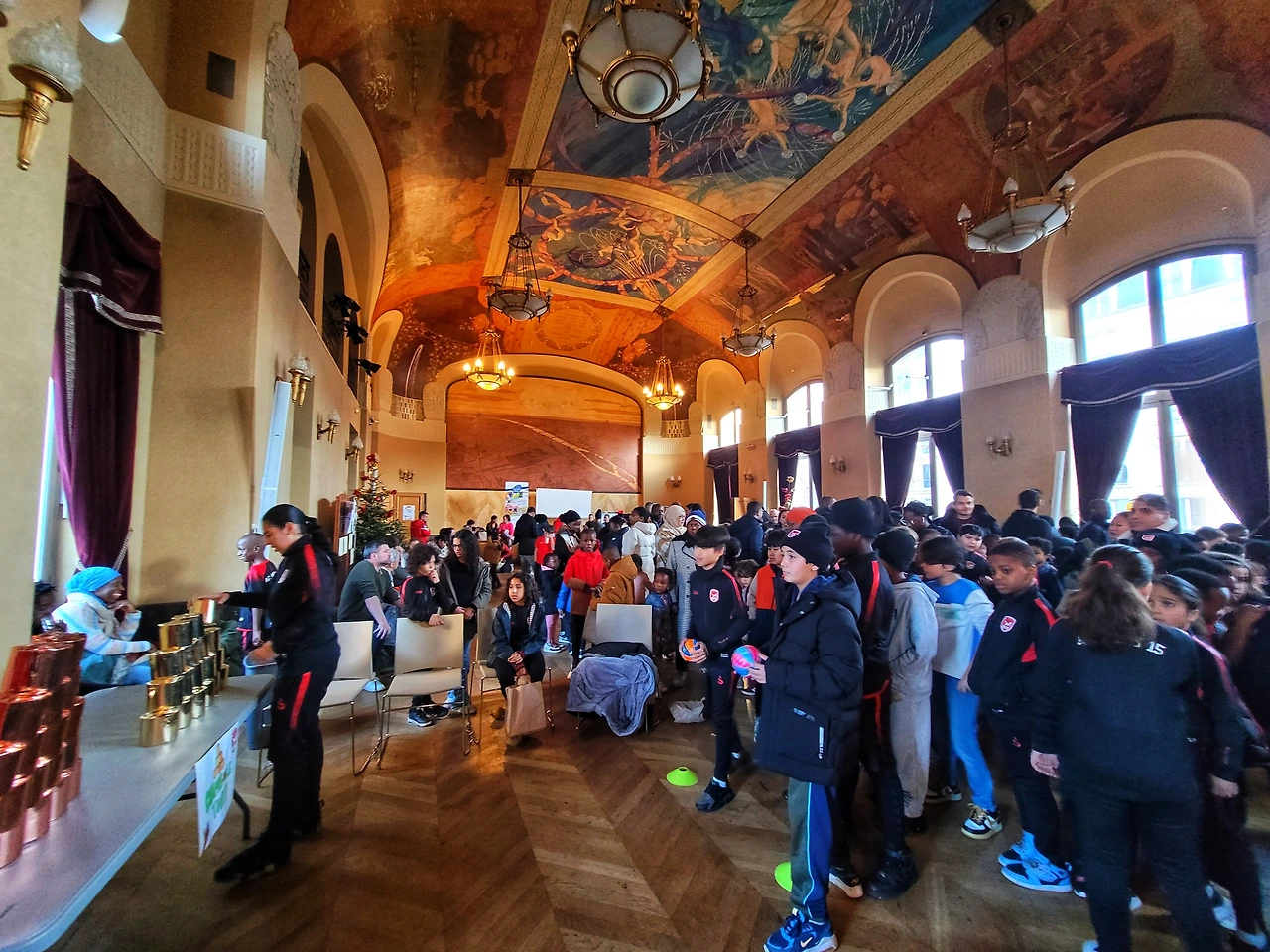 15구 축구 클럽 크리스마스 파티가 15 구청 타운홀에서 열렸다. 왜 축구클럽 파티를 축구장이 아닌, 구청에서ㆍ 하는 거냐며 둘째는 가는 내내 투덜거렸지만, 난 15 구청 홀이 궁금해서 가는 거였다. 파리의 한 지인이 프랑스 구청 홀에서 결혼을 했는데 참석한 사람들이 결혼식에 집중 못하고 주변을 둘러볼 정도로 화려했다는 얘기를 들었기 때문이다. 베르사유궁 거울의 방 보급 버전인가 싶었는데 15구 타운홀은 그 정도는 아녔다. 하지만 파리는 살아있는 거대한 박물관이자 곳곳이 숨어있는 보물이라는 평가에 걸맞은 시간의 때 묻음과 인테리어의 화려함을 갖춘 공간이었다. 무엇보다 파리의 많은 건축물이 그러하듯, 채광을 신경 쓴 게 인상적이었다. 구청의 평범한 건물이 이 정도라는 게 놀라운 건데, 정작 축구 클럽의 파티는 이 유서 깊은 공간을 실내 축구장처럼 활용하고 있었다. 프랑스의 축제답게 무질서했고, 각자 알아서 삼삼오오 즐기는 분위기라 늘 그렇듯 뻘쭘했다. 심심해서 커피나 마셔야겠다고 줄을 섰는데, 커피 받는데만 20분 넘게 걸린, 아주 프랑스 스러운 파티였다.