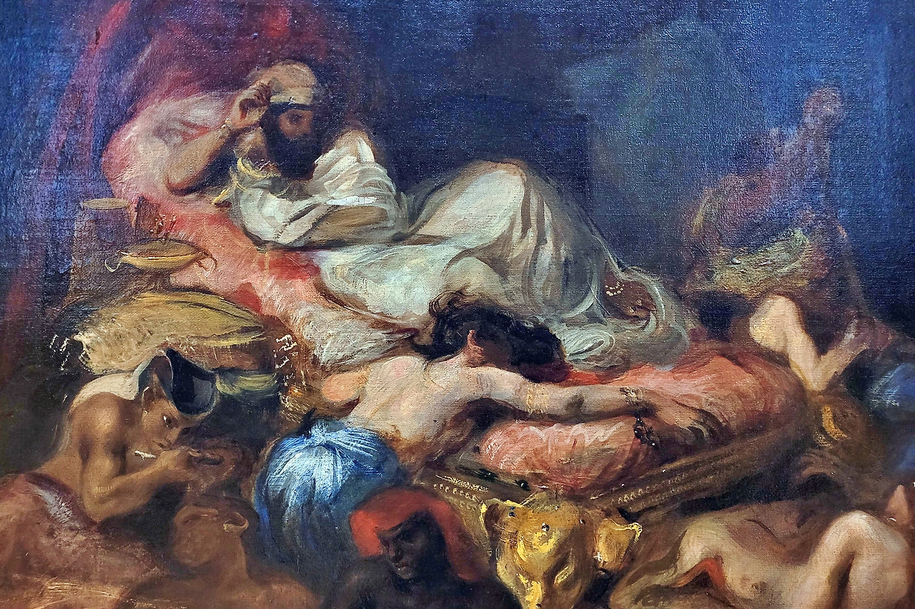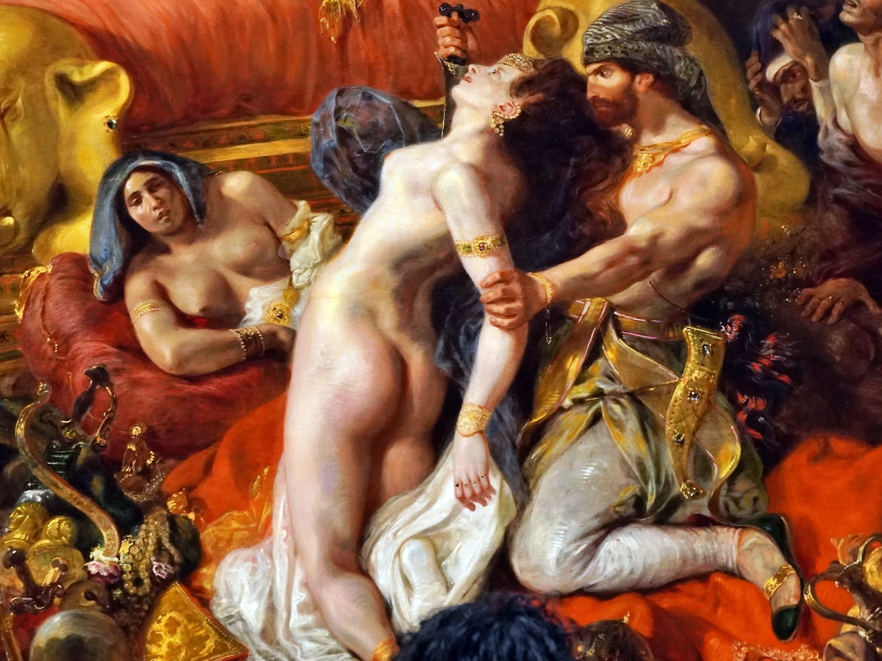 그림의 묘사는 당시로 치면 ‘19금’이었습니다. 폭력적이면서 에로틱했죠. 무엇보다 이 혼돈을 응시하고 있는 사르다나팔루스의 차분한 태도가 관객들의 마음을 더욱 요동치게 했죠.