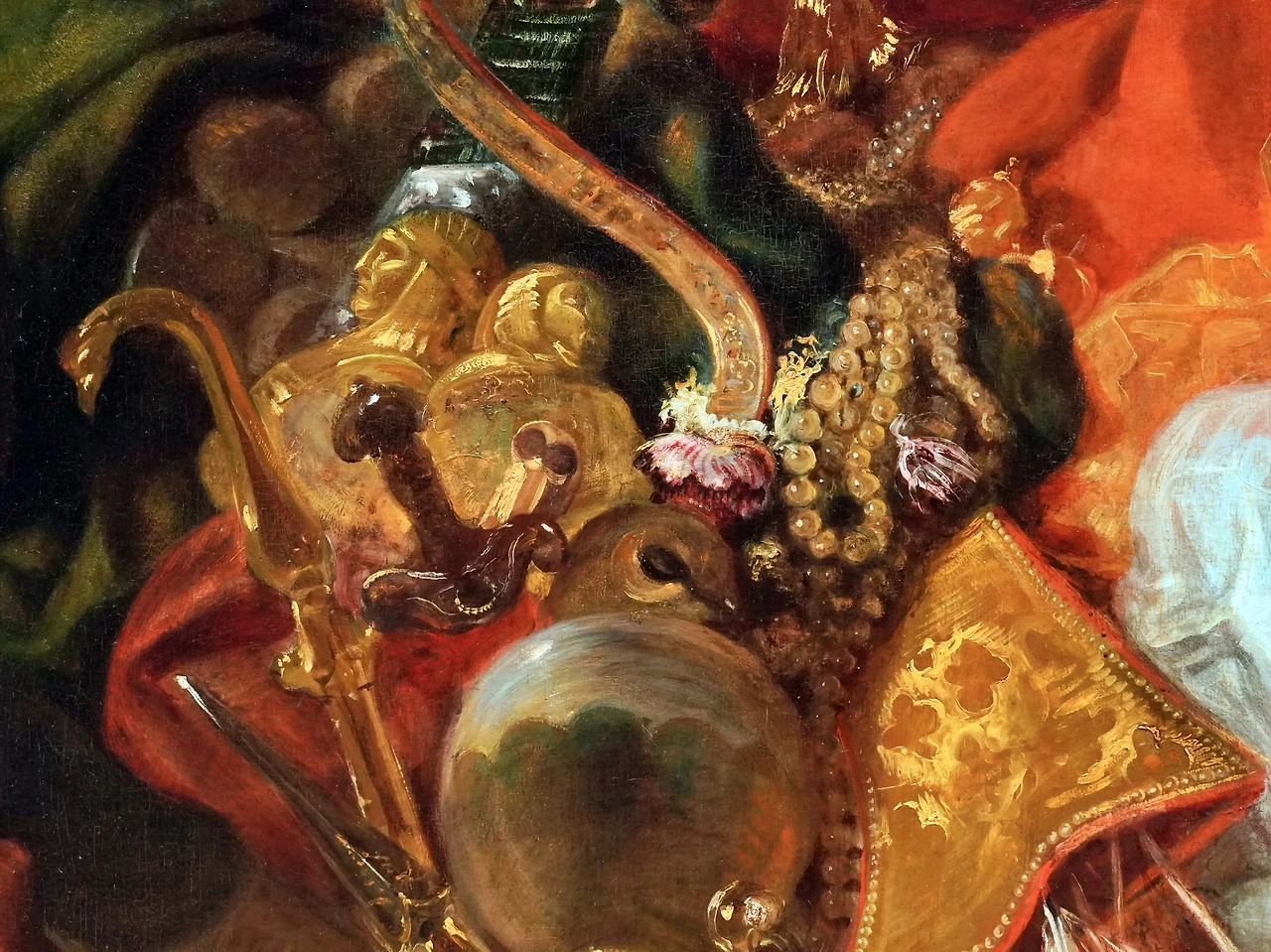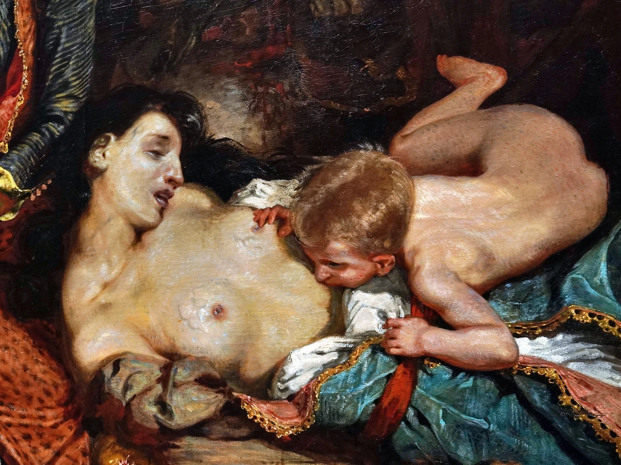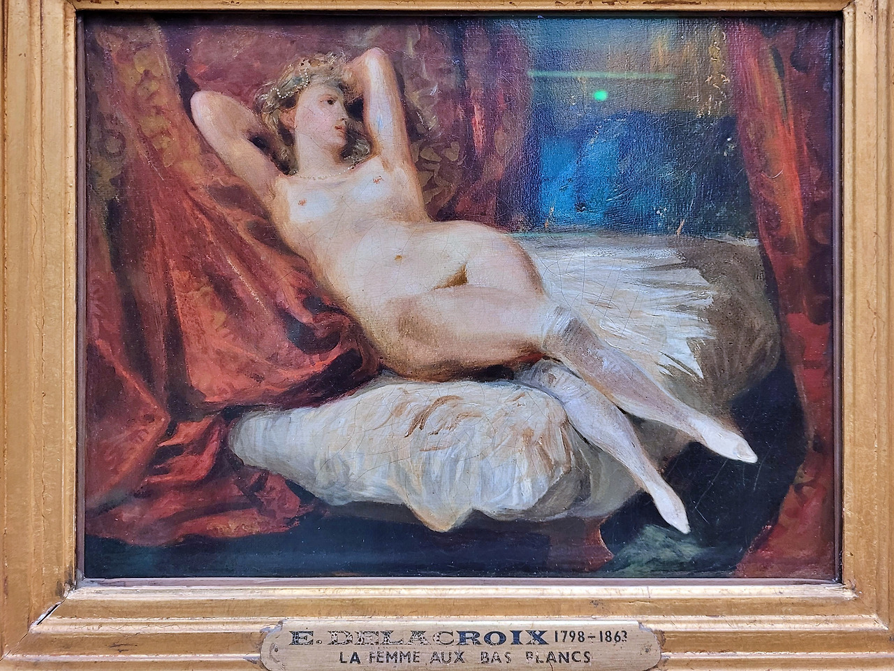 침대 주변의 소품은 무질서한 구도를 더 어지럽게 만듭니다. 배경은 너무 어두워 잘 보이지 않으며, 일부 인물들의 동작은 잘 이해되지 않습니다. 한 비평가는 ‘살롱전에 낭만주의가 침략했다’라고 기록하며, 낭만주의를 적대시했죠.