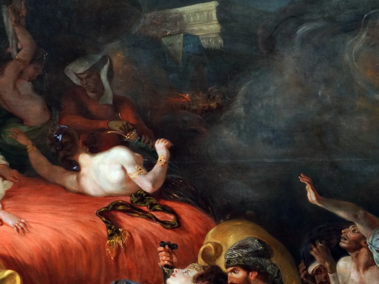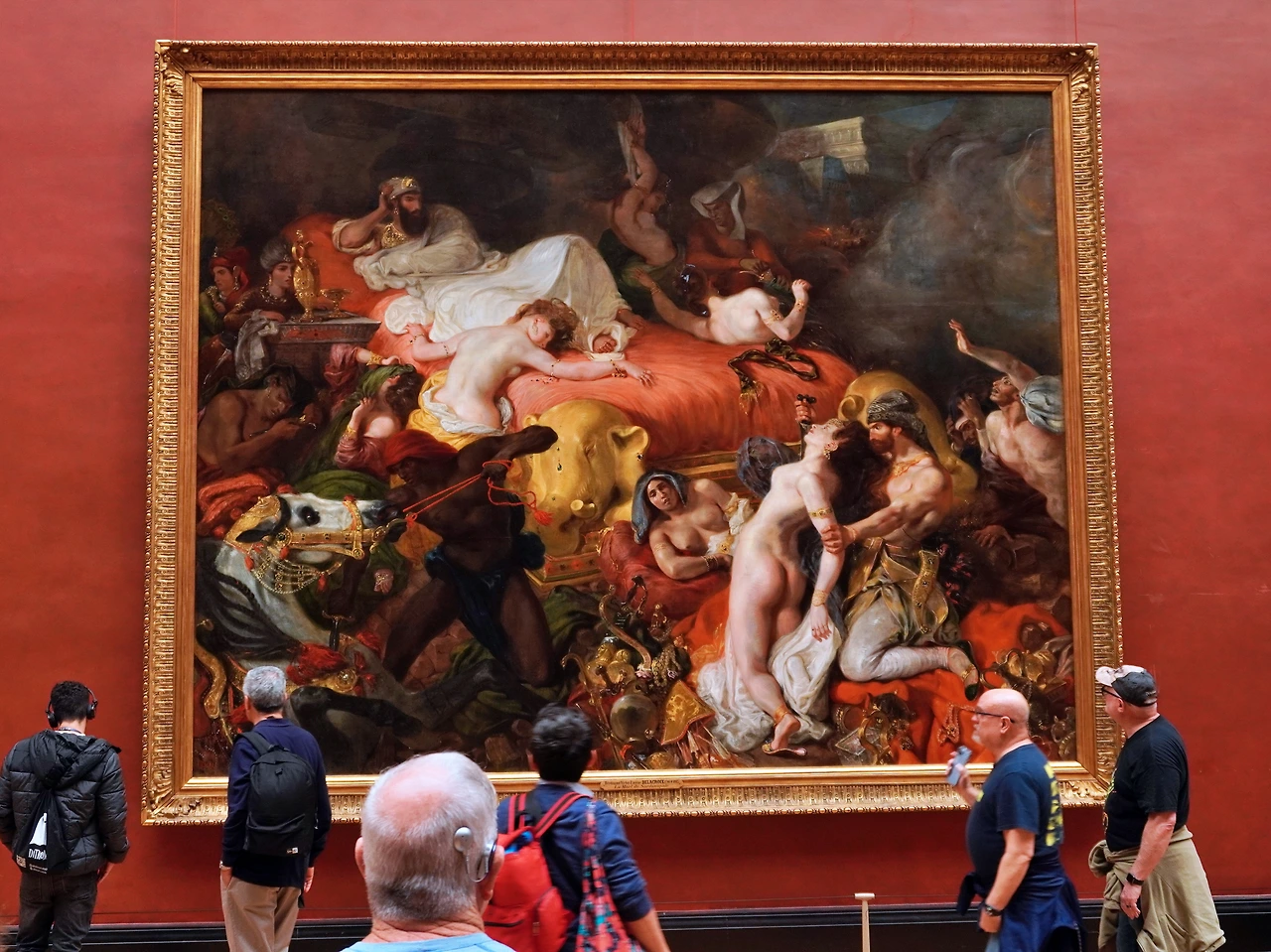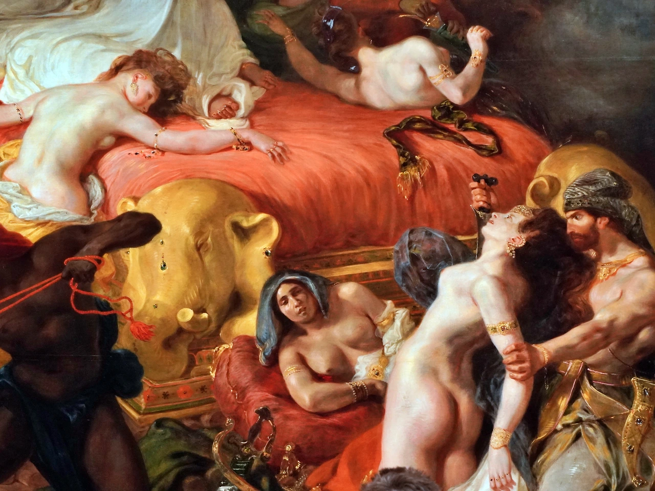 살롱전에 <사르다나팔루스의 죽음>이 처음 전시됐을 때, 평론가들은 격분했습니다. 일단 구성이 너무 혼란스러웠습니다. 라파엘로나 다비드의 그림과 비교해 보면, 작품의 구도가 어수선해, 어디서부터 그림을 봐야 할지, 나아가 그림이 어떤 이야기를 담고 있는지 감 잡기가 쉽지 않습니다.