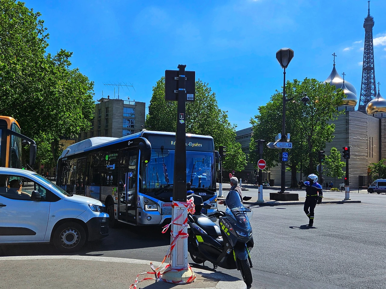퇴근 즈음, 사무실 앞 도로까지 차량 정체가 심한 걸로 보니 알마 다리는 지금 대혼란이겠구나 싶었다. 결국 사태가 너무나 심했다고 판단한 건지, 처음으로 파리 교통경찰이 차량 정체 해소 작업을 하는 모습을 봤. 다. 엄청난 사건이었다. 도로를 막거나 교통 딱지 떼는 장면은 많이 봤지만, 꼬여버린 도로를 푸는 건 한 번도 본 적이 없었다. 뉴스를 들어보니 바이든 외에도 슐츠 독일 총리 등 해외 정상이 프랑스를 방문했다. 아마도 이 시간에 정상 중 누군가가 알마 다리 앞을 지나가야 했던 게 아닐까 생각했다. 그렇지 않고선 이렇게 나타날 프랑스 교통경찰이 아니다.