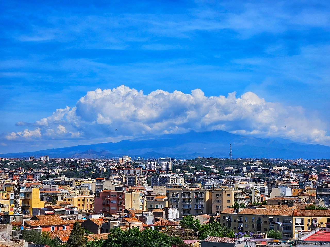 구름에 가려진 에트나 화산