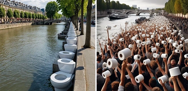 사실 관심받는 걸 좋아하는 마크롱 대통령이 이달고 시장의 퍼포먼스를 그냥 두고 볼 리 없었다. 마크롱 대통령은 자신도 이달고 시장과 함께 센 강에 들어가겠다고 밝혔는데, 이것이 여론을 자극했다. 마크롱 대통령의 관종질에 지쳐있던 파리 시민들은 ‘6월 23일 센 강에서 똥을 싼다’ 운동을 시작했다. ‘그들은 우리를 똥 속으로 빠뜨렸고, 이제 그들이 우리의 똥 속에 빠질 차례’라는 게 운동의 기획 의도였다. 물론 이달고 시장의 퍼포먼스 취소로 ‘똥 싸기 작전’도 무산됐지만, 재미 들린 프랑스 네티즌들은 강물의 유속과 방향을 계산해, 언제 어디서 싸야 정확히 마크롱 대통령에게 똥을 맞출 수 있는지 알려주는 내용을 올리고 있다.