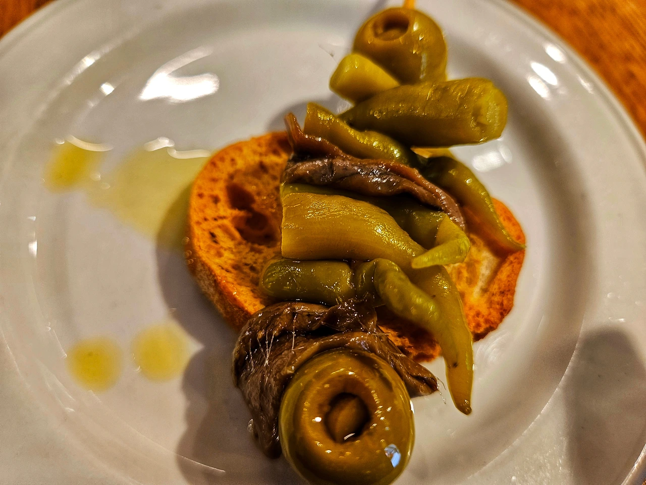 스페인 여행의 큰 매력 중 하나가 타파스바에서 다양한 음식을 먹어 보는 일이다. 바스크 지방에선 타파스와 비슷하지만 조금 다른, 이쑤시개로 이런저런 음식을 고정해 빵 위에 올려 먹는 핀초(Pintxo)가 유명하다. 특히 올리브와 작은 고추, 절인 멸치를 꼬치로 만든 길다(Gilda)가 인상적이었다. 나처럼 채소를 싫어하는, 심지어 비린내 강한 절인 생선을 특히 싫어하는 사람도 좋아하게 만드는 맛이었다. 아마 올리브유에 그 비밀이 있지 않을까 싶다.