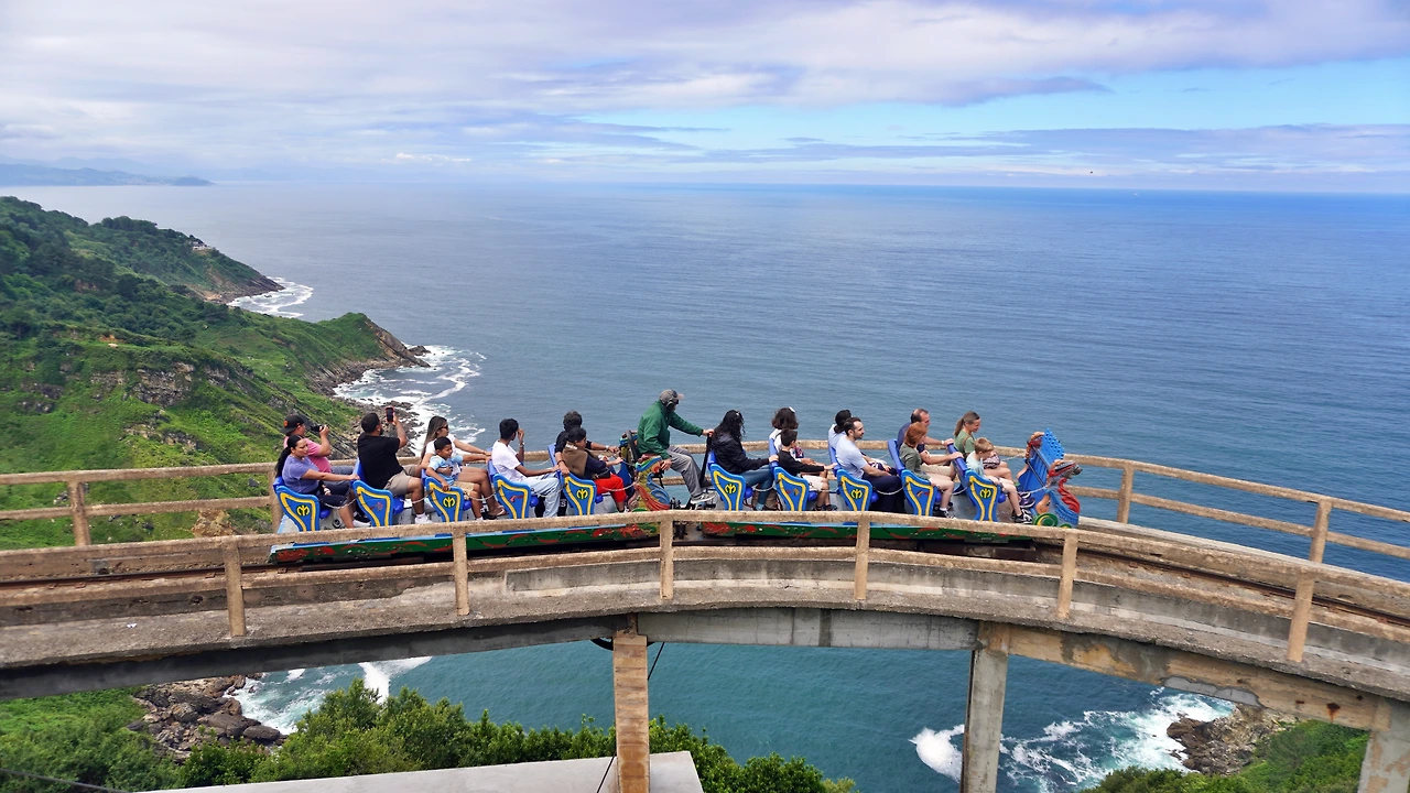 프랑스 도시들과 조금 다른 점이라면 역시나 산이 많다는 것. 한 번은 운전 중 길을 잘못 들어 산속 좁은 길을 지나게 됐는데, 마치 나르코스에 나오는 정글에 들어온 기분이었다. 실제 도심 전경을 찍으면 한국 전라도의 비금도가 생각날 정도로 산과 숲이 많다. 특히 이구엘도(Igueldo) 산이 관광객에게 유명하다. 산 정상으로 연결된 케이블카가 있을 정도다. 산 위에 올라가면 인천 바닷가에서 볼 법한 낡은 유원지가 나온다. 시시한 놀이 기구밖에 없지만, 유원지 자체가 고지대에 있어, 섬 전경이 한눈에 보이는 후룸라이드와 깎아지는 절벽 아래로 돌진하는 청룡 열차를 탈 수 있다. 속도는 느려도 꽤나 스릴 있다.