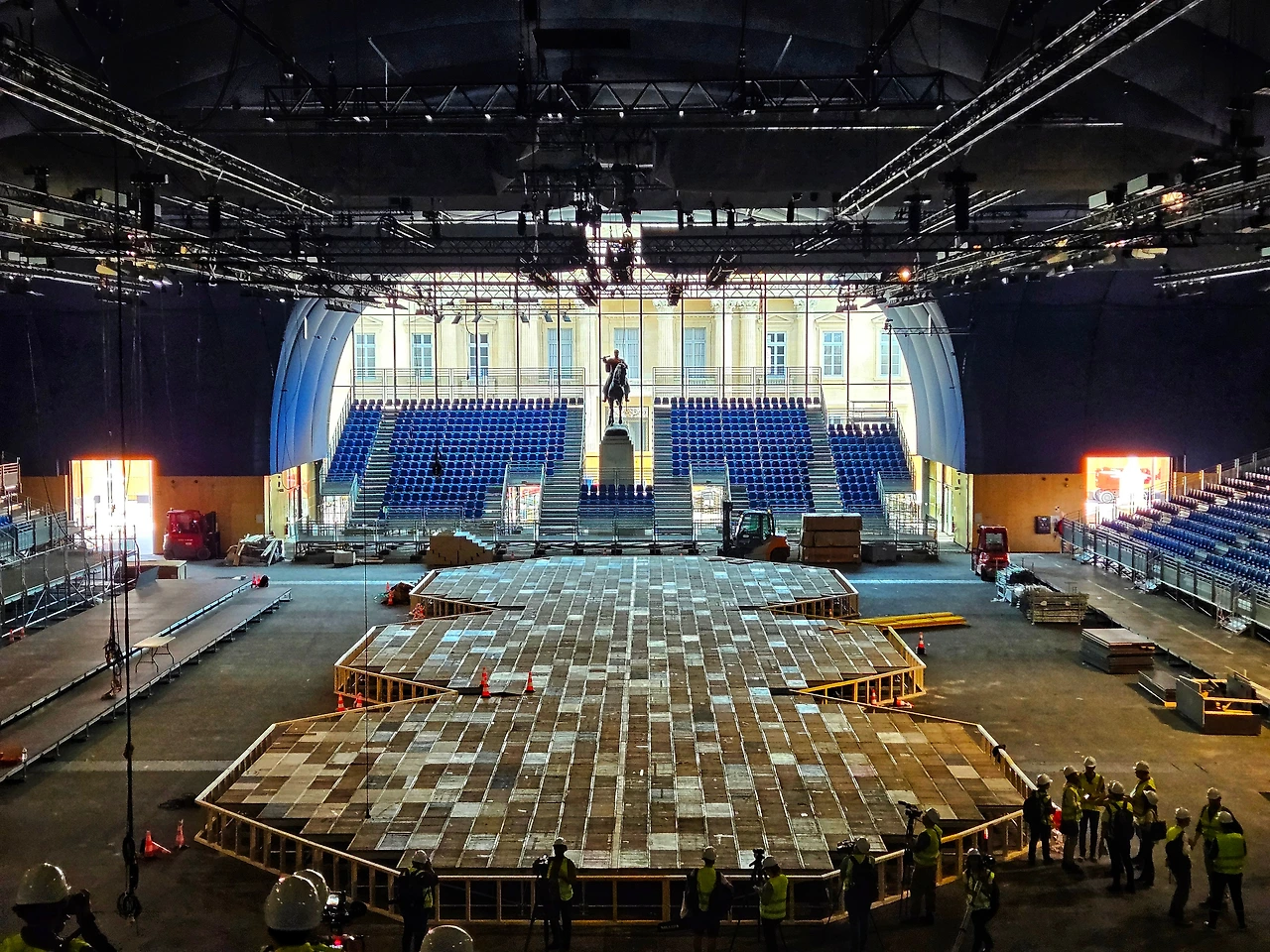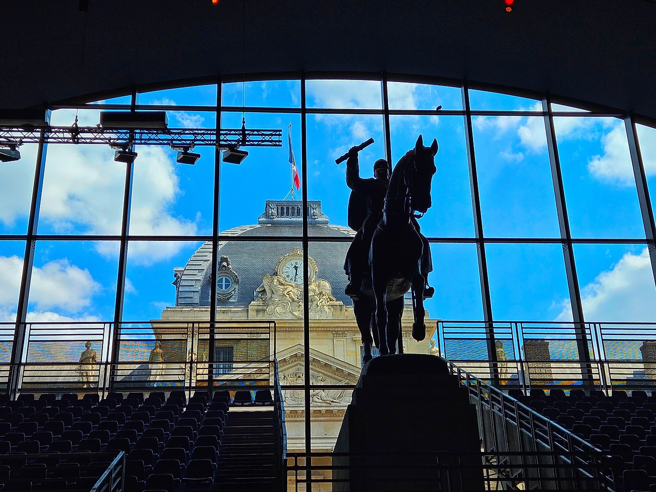 에펠탑을 마주 보는, 상도 마르스 광장의 끝엔 그랑팔레 에페메르가 있다. 번역하면 임시 그랑팔레. 오랜 기간 공사가 진행 중인 그랑팔레를 대신해, 대규모 엑스포나 전시회를 여는 공간이다. 올림픽 준비 기간 이곳을 방문했을 때, 2층 창문에서 바라본 에펠탑 풍경은 멋졌지만, 유도와 레슬링이 펼쳐질 경기장은 크게 인상적이지 않았다. 창문 사이로 나폴레옹이 나온 군사학교가 보인다는 점, 그랑팔레 에페메르의 대형 기마상이 그나마 기억에 남았다. 텅 빈 곳에 공사판 비계와 임시 발판 등을 활용해 초대형 관중석을 세웠다는 게 한편으로 불안했지만, 한편으론 놀라웠다. 거대한 임시 설치물이 과연 안전하겠냔 생각이 들었지만, 동시에 공간만 있으면 어디든 초대형 스탠드를 세울 수 있다면, 그야말로 파리가 움직이는 미래의 경기장 모델을 제시한 게 아닌가 싶었던 것이다.