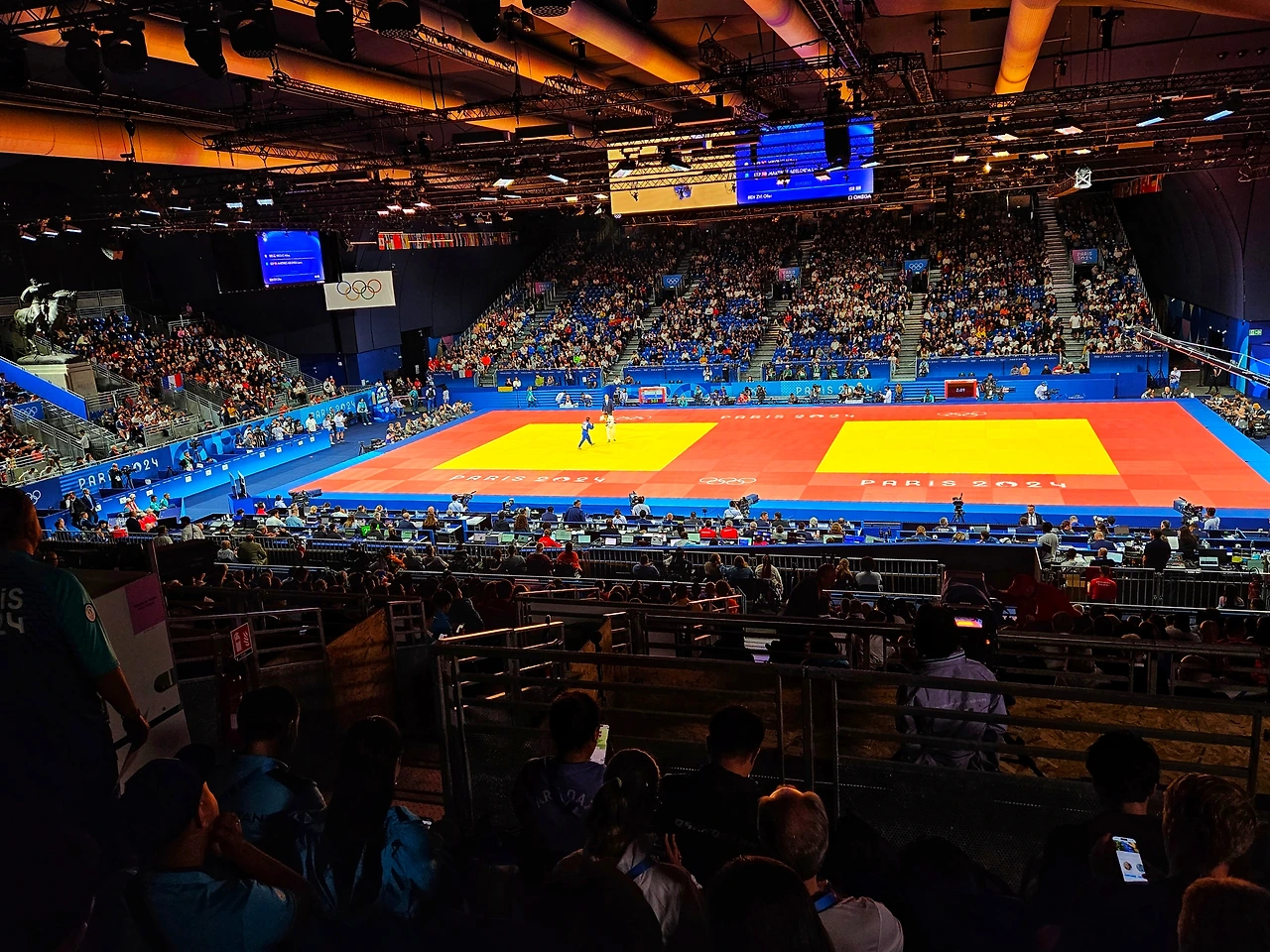 반면 임시 발판으로 설치한 대형 관중석은 놀라울 정도로 안정적이었다. 관중들이 걸을 때 발생하는 임시 설치물의 소음도 문제 될 게 없었다. 오히려 관중들은 철골 구조의 관중석 바닥을 발로 구르며, 스탠드를 탬버린 같은 응원 도구로 활용하고 있었다. 그럼에도 상드마르스 아레나 경기장은 완전히 개방된 대회를 표방했던 파리의 야심에 조금 못 미치는 수준이었다. 어디서나 볼 수 있을법한 평범한 유도 경기장이랄까.
