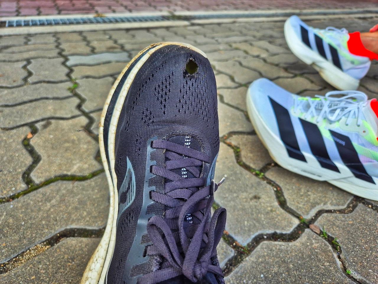 난 2020년에 구매한 써코니 엔돌핀 프로2를 신고 뛰었다. 러닝화는 내구성이 약한데, 오래 신다 보니 신발 앞에 꽤 큰 구멍이 났다. 검정 양말로 가려지지 않을 정도로 구멍이 커졌는데, 대회에 참가한 사람들의 화려한 러닝화 때문에 그 구멍은 더 크게 느껴졌다. 사실 프랑스에선 패션과 관련해 사람들이 부끄러워하는 게 두 가지 있다. 하나는 자신의 옷과 똑같은 걸 다른 사람이 입은 걸 발견하는 일. 다른 하나는 새 옷을 입거나 새 신발을 신는 일. 옷이 낡을수록 그리고 독특할수록 어깨에 힘이 들어가는 게 파리지엥인데, 어제 나는 그 두 조건을 충족했음에도 조금 부끄러웠다. 아무래도 구멍 때문인 것 같았다. (서울 때문은 아녔겠지)