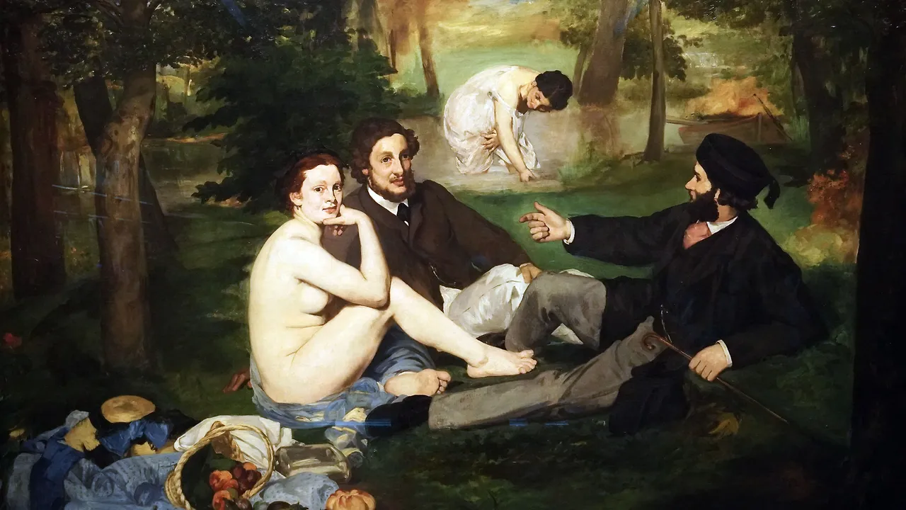 심사위원들이 황제의 지시에 적극적으로 호응한 건, 나름 그들만의 계산이 있었기 때문입니다. 위대한 살롱의 심사 기준을 대중에게 공개해서, 화가들의 불평이 타당하지 않음을 확인하려는 심산이었습니다. 이런 계산을 화가들도 알았습니다, 낙선전 개최 결정 직후 600점 넘는 그림이 낙선전 출품을 포기한 이유였죠. 도록도 제대로 만들어지지 않은 어설픈 전시, 하지만 심사위원들의 계산은 엇나갔습니다. 낙선전 개막 당일부터 엄청난 군중이 모이더니, 일요일엔 하루 4,000명의 방문객이 낙선전을 찾기도 했습니다. 흥행에 성공한 낙선전에서도 가장 유명했던 그림, 나폴레옹 3세 황제에게 ‘품위에 어긋난다’라는 평가를 받았으며, 황후는 아예 쳐다보지도 않았던 논쟁작이 있었습니다. 바로 에두아르 마네 Édouard Manet의 ‘풀밭 위의 점심’ Le Déjeuner sur l'herbe입니다.