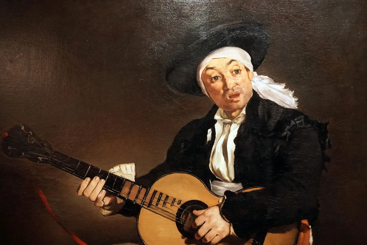 마네는 미술의 기준을 왜 무시한 걸까요? 그건 마네의 기질과 관련이 있습니다. 마네는 부유한 파리의 상류층 가문에서 태어났습니다. 법무부 고위 관료였던 마네의 아버지는 아들이 법관이 되길 바랐지만, 마네는 당시 가장 유명했던 미술 아카데미, 토마 쿠튀르의 제자가 됩니다. 마네에겐 타고난 자유분방함이 있었습니다. 법관이 되기도 싫었지만, 동시에 쿠튀르가 가르치는 대로 그리는 것 또한 따분하긴 마찬가지였습니다. 1861년 마네는 ‘스페인 가수’"Le Chanteur Espagnol란 작품으로 처음 살롱전을 경험합니다. 이 작품 또한 사실주의와 낭만주의가 묘하게 뒤섞인, 새로운 스타일의 그림이었습니다. 당시 롤모델을 찾던 젊은 화가들은 이 작품에 열광했는데, 그중엔 미래의 인상파 화가도 있었습니다.