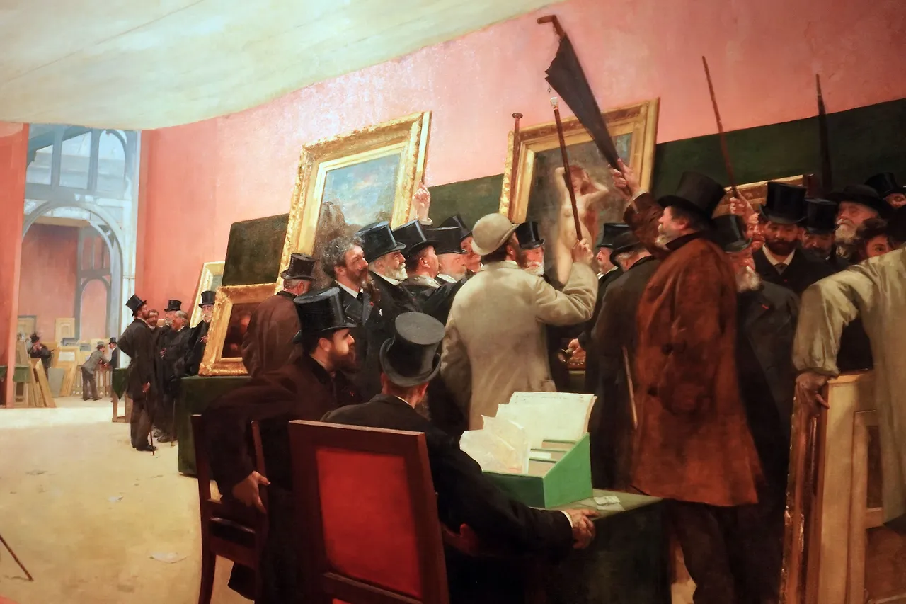 다시 이야기의 시작은 살롱으로 돌아가야 합니다. 쿠르베의 저항에도 불구하고, 살롱의 명성은 계속 높아졌습니다. 심사위원들은 자신들의 제자를 입선시키기 위해 경쟁했으며, 일부는 은밀한 봉투를 건네며 전시장의 좋은 위치를 요구하기도 했습니다, 반대로 낙선의 쓰라림은 더 커졌습니다. 낙선작엔 거절(Refuse)을 의미하는 R이 캔버스에 찍혔는데, R 낙인이 찍힌 그림은 거의 팔리지 않았습니다. 용킨트 Johan Barthold Jongkind라는 화가는 선판매했던 그림이 낙선하자, 구매자에게 환불을 해줬을 정도였으니까요. 살롱의 인기가 치솟는 와중에, 1863년 살롱을 앞두고 파격적인 조치가 발표됐습니다. 화가당 출품작 수를 3점으로 제한한 겁니다. 분노한 화가들은 국무장관 발레스키 백작을 찾아가 항의했지만, 달라지는 건 없었습니다.