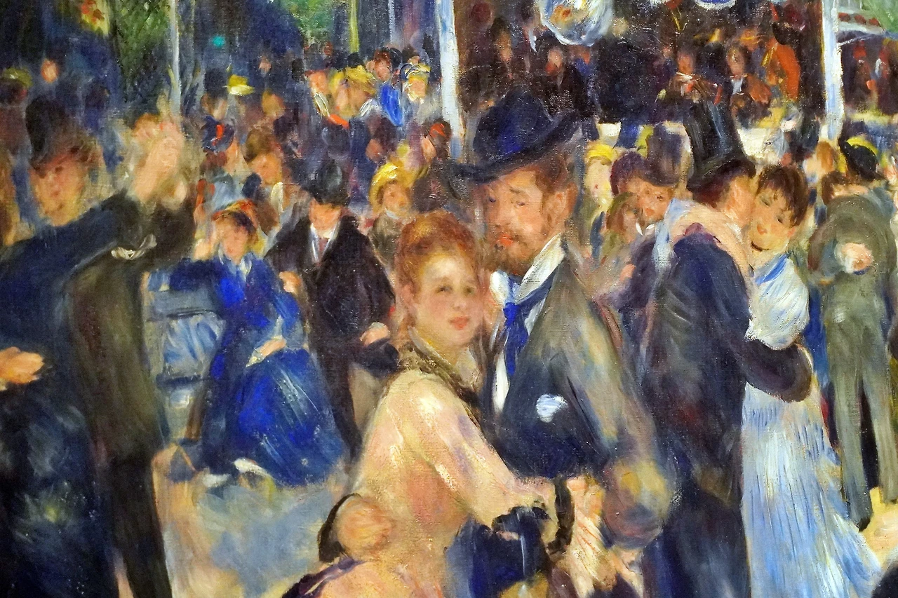 세 번째 인상주의 전시회에 르누아르의 대표작이라 할 수 있는 <물랭드라갈레트의 무도회Bal du moulin de la Galette>가 출품됐다. 르누아르는 지금도 많은 화가와 관광객이 몰려드는 몽마르트르 언덕에서 열린 파티를 그렸다. 인상주의의 일원답게, 그는 빛의 효과가 만들어 내는 광경을 포착하려 애썼다. 나무 사이로 떨어지는 빛을 표현하기 위해 인물의 옷과 얼굴을 얼룩덜룩하게 그린 것. 카바넬Alexandre Cabanel의 비너스처럼 매끈한 몸매 표현이 인정받던 시대였다. 빛이 떨어진 신사의 등 역시 얼룩이 묻은 것처럼 지저분하다. <물랭드라갈레트의 무도회>의 얼룩덜룩한 표현은 당연히 평론가들의 공격 대상이 됐다. 이 그림과 함께 출품했던 르누아르의 작품들을 보면 르누아르는 모네와 함께 빛의 실험에 동참했음에도, 색채에 대한 관심, 인물에 대한 표현 등 모네와 구별되는 자신만의 지향점을 대표작 안에 담아냈다.