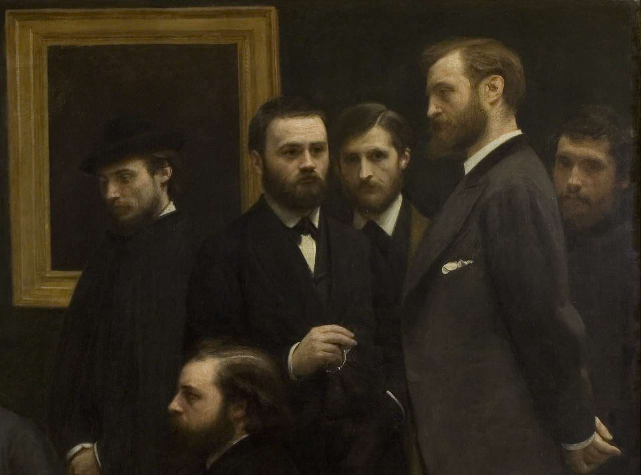 팡탱 라투르가 그린 단체 사진 그림은 하나 더 있다. 직접 본 적은 없는 <피아노 주변에서Autour du piano>. 오르세 미술관은 소장한 그림을 자주 교체하고, 때론 외부에 대여를 해주기 때문에, 여러 번 방문했지만, 이 그림을 본 적이 없다. 실제로 다른 3점에 비해 덜 유명하기도 하다. 그림 속 인물들이 덜 유명하기 때문이다. <바티뇰의 스튜디오>를 그리고 2년 뒤, 팡탱 라투르는 시인들을 모았고, 13년이 지난 후, 이번엔 음악가들을 그렸다. 그에겐 장르가 중요한 게 아녔다. 예술가적 진정성이 있다면, 모두가 그의 동지가 될 수 있었다. 팡탱 라투르가 그린 단체 사진 연작은 결국 예술가의 초상을 탐구했던 프로젝트의 결과물이었으며, 그 탐구 끝에 그는 예술가라는 직업적 자존감이 지닌 가치를 찾아냈다. 바로 이것이 인상주의에 동의하지 못하던 팡탱 라쿠르가 사진이 아닌 화폭에 인상주의 선언문을 대신 써준 이유다.