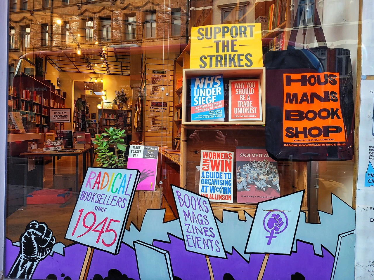 프로이센에서 태어나, 프랑스 독일에서 자신의 사상을 발전시켰지만, 사실 마르크스는 인생 후반부, 가장 긴 시간을 영국에서 살았다. (그의 무덤도 런던에 있다.) 자본주의가 시작된 곳이지만, 동시에 자본론이 집필된 곳이기도 한 런던엔 1945년에 세워진 급진주의 전문서점 Hausmans Bookshop이 있다. 온라인의 시대에 서점이 그 긴 기간을 버텨온 것도 놀라운데, 요즘 같은 탈진실의 시대에 특정 이데올로기를 굳건히 유지하고 있는 건 더 놀랍다. 밖엔 'I support the NHS strike'가 붙어있고, 안엔 <Always Red> 같은 책들이 즐비하다.