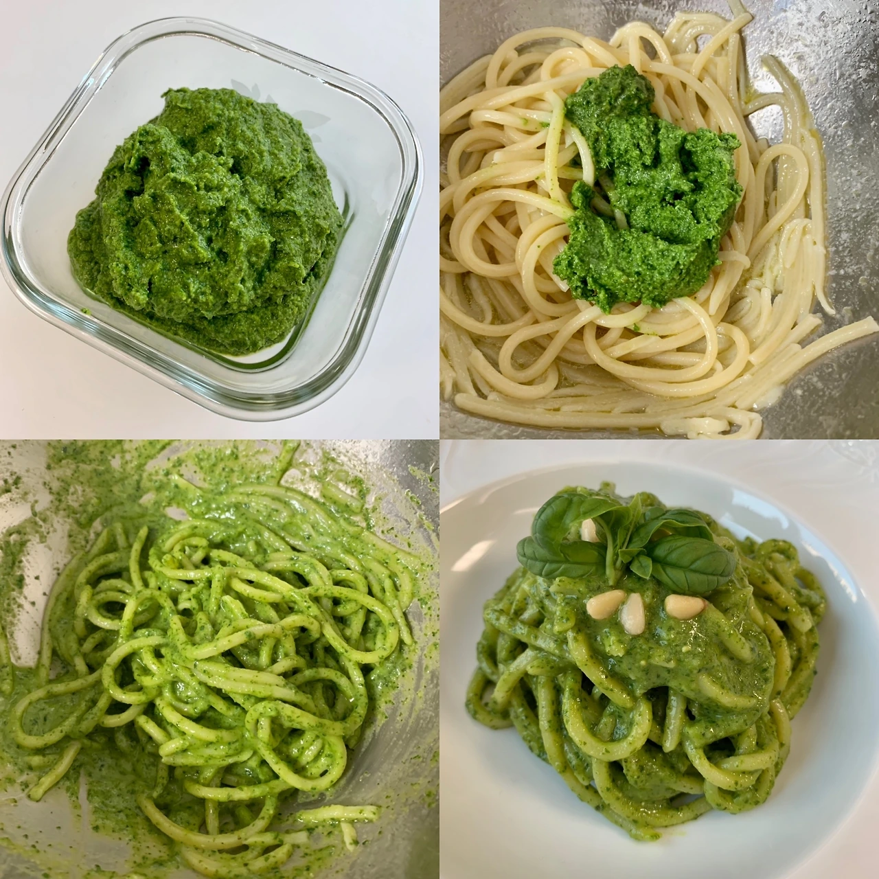 신선한 생 바질 잎/파르미지아노 레지아노/페코리노 로마노/잣/마늘/엑스트라버진 올리브오일/소금