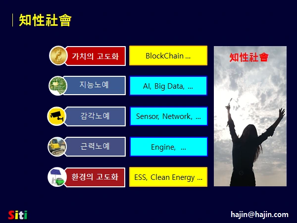 이쯤 되면 ‘당장 먹고사는 게 힘든데 그게 다 무슨 소용이냐’라고 반문하는 사람이 있으리라 본다. 맞다. 먹고사는 문제가 해결되지 않은 상태에서 이런 이야기는 어쩌면 공염불처럼 들린다. 그래서 우리가 사는 사회구조 및 주거환경 등을 모두 개혁해서 최소한의 먹고사는 문제를 해결하면서 지성인들의 삶을 추구할 수 있도록 사회의 개혁이 필요한 것이다. 이것이 얼마나 거대한 개혁 프로젝트인지 상상이 될 것이다. 하지만 바로 이런 노력이 신 산업을 일으키고 침체된 경제를 활성화는 기폭제가 될 것이며 지성사회라는 새로운 인류 문명을 만들어가게 될 것이다. 이 문제는 나중에 좀 더 자세하게 다룰 예정이다.