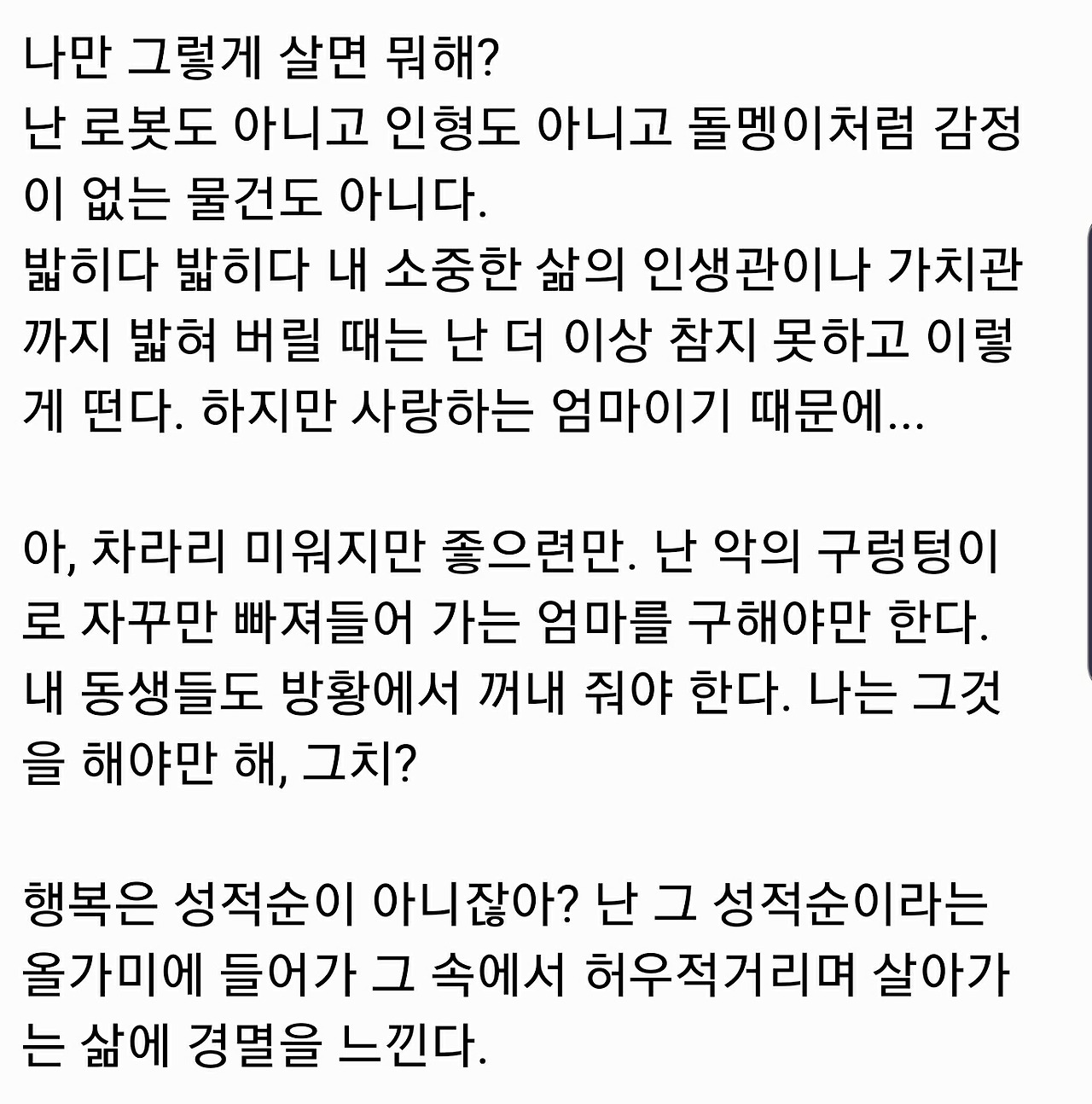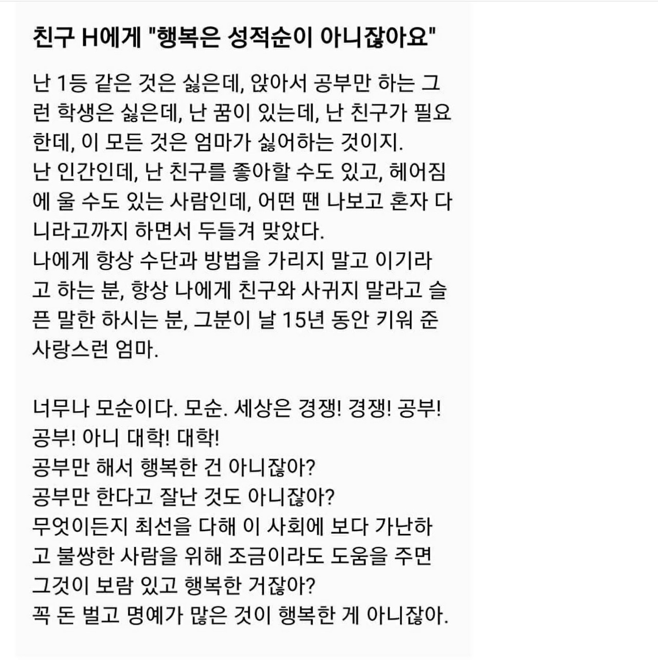 친구 H에게 "행복은 성적순이 아니잖아요."