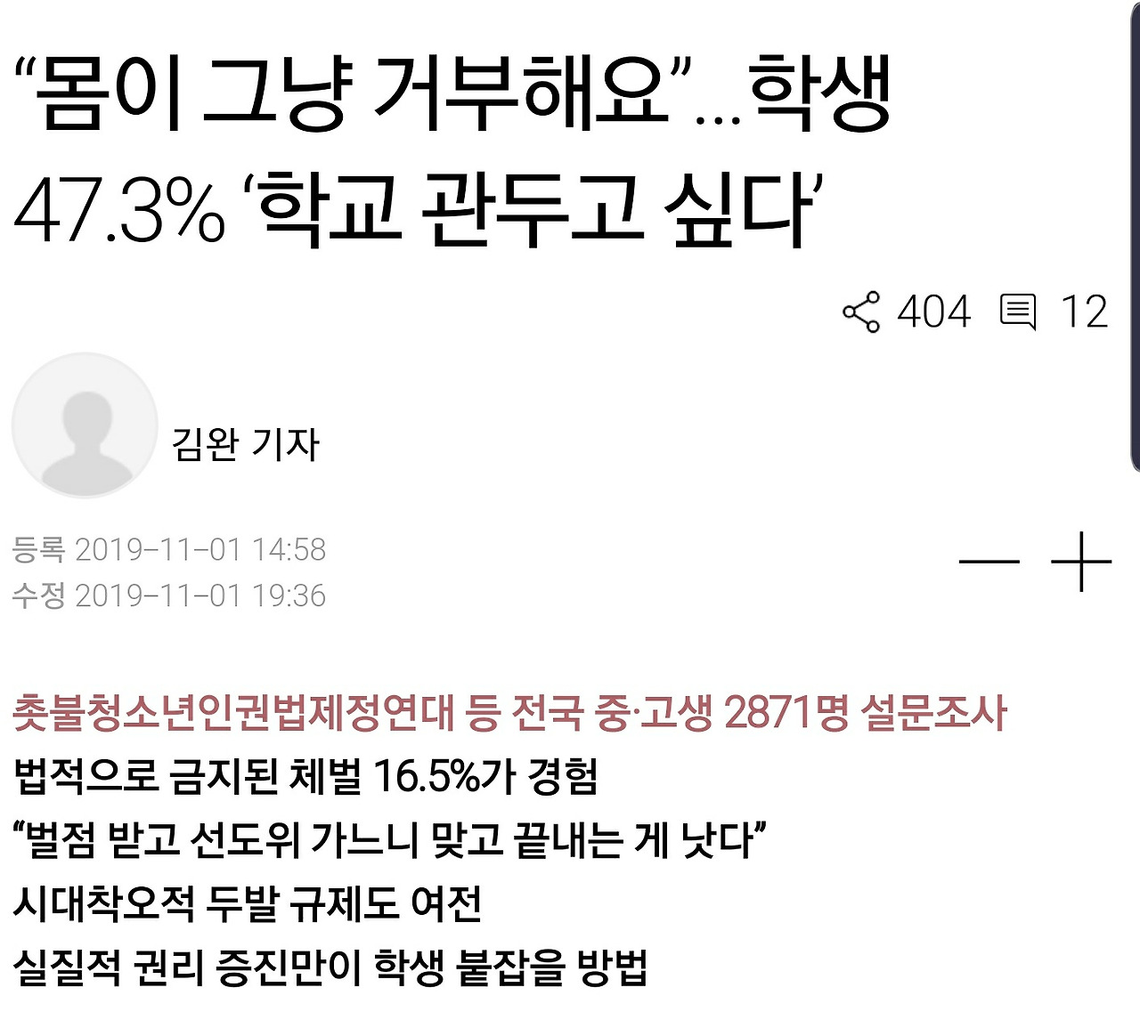 학교는 아직까지 가기 싫은 곳이거나 오직 가야 하니까 가는 곳일 뿐이니까요. ⠀ 학생에게 교육과 배움은 사라졌고 남은 건 오직 입시뿐인 삶입니다.