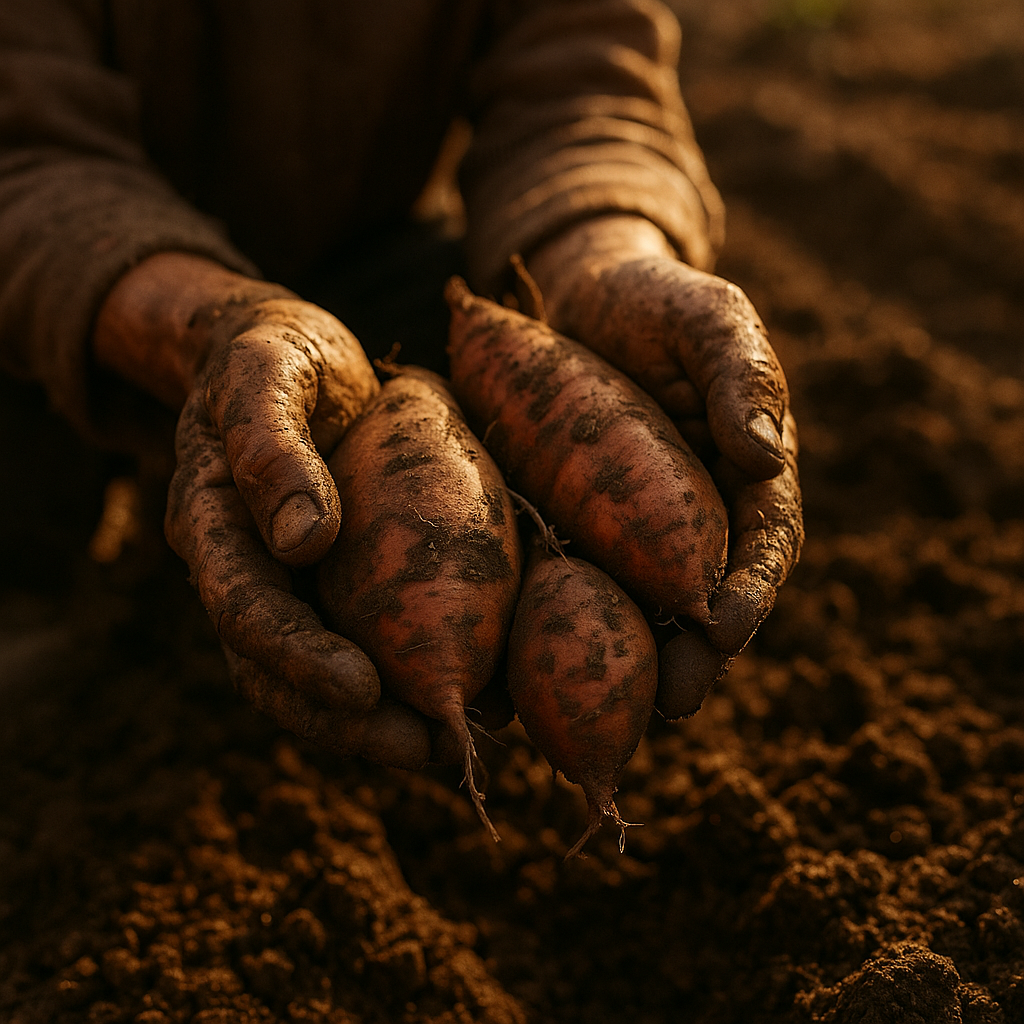갓 꺼낸 고구마에서
