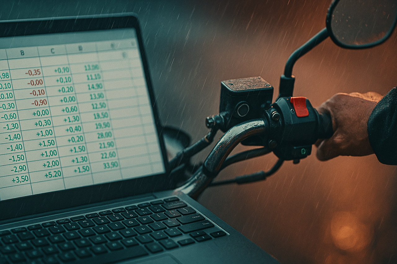 라이더의 우비가 빗물을 짜내고