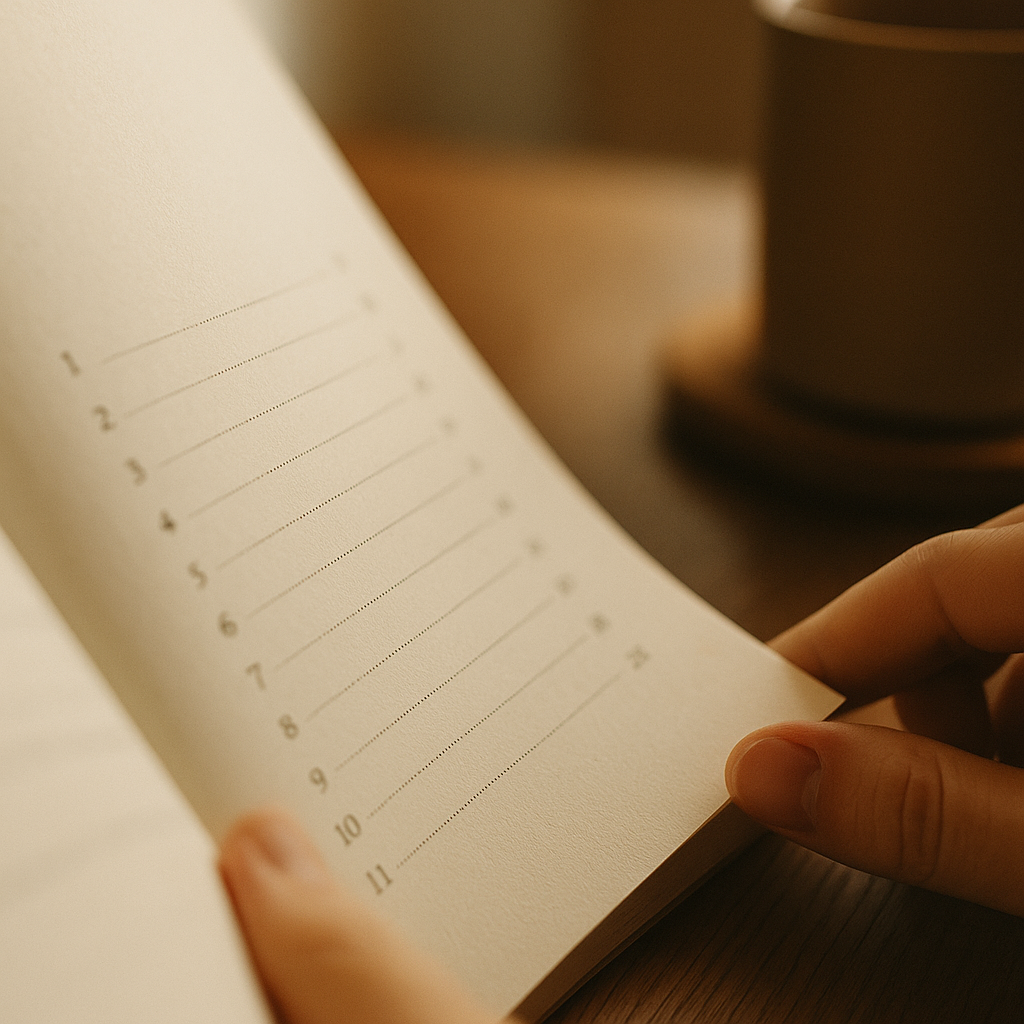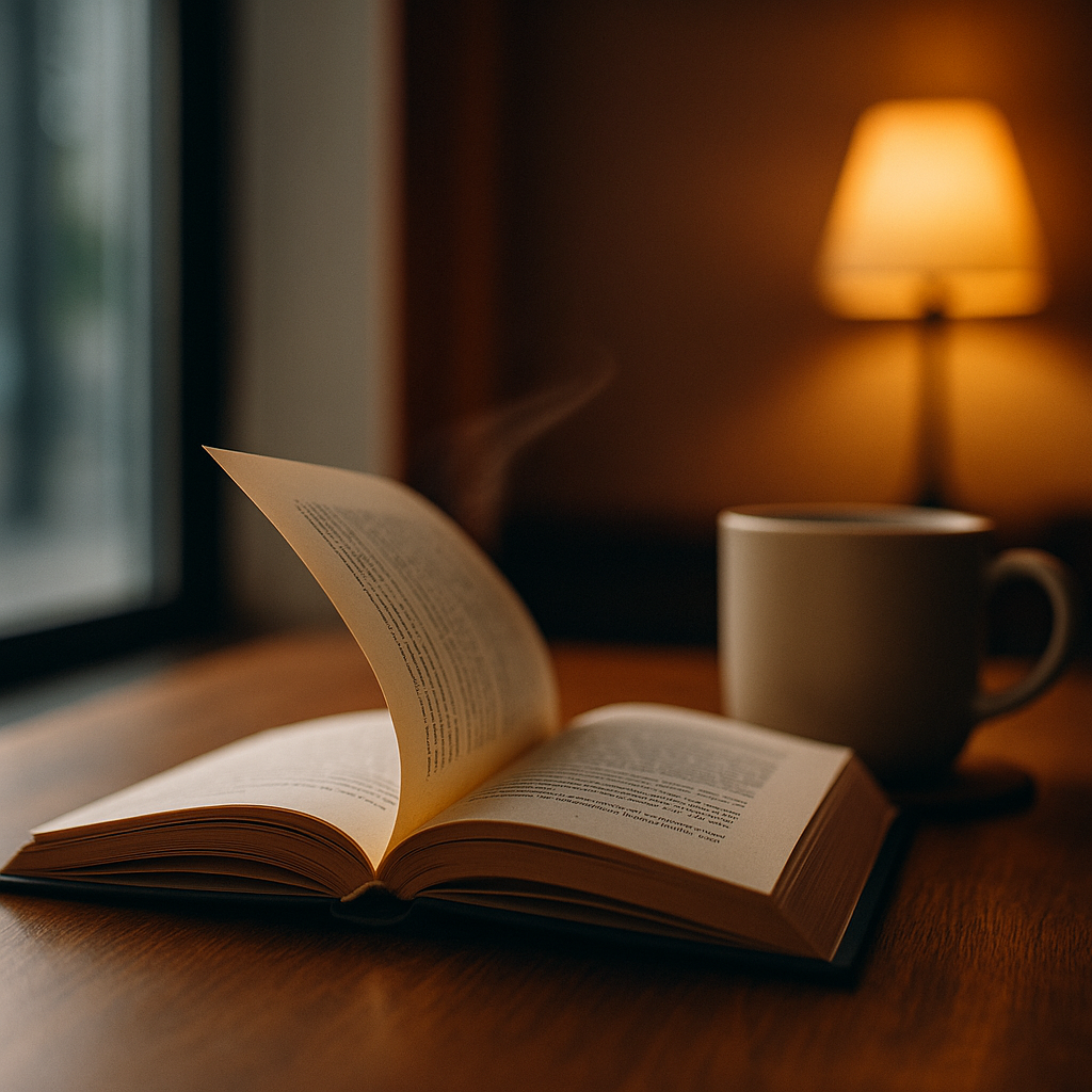 책을 펼치기 전, 나는 컵을 한 번 들어 올렸다가 자리에 내려둔다. 소리가 거의 나지 않는다. 소리가 나지 않는 정도의 무게. 그 무게가 바로 오늘 읽을 분량을 가늠해 준다. 커피가 지나치게 뜨거우면 표지를 쓰다듬으며 잠시 기다려 보고, 미지근해지면 한 모금을 머금는다. 혀끝에서 목으로 내려가는 동안 눈은 천천히 목차를 훑는다. 목차의 숫자는 계단 같다. 급하게 오르지 않는다. 발을 살짝 올려만 놓아도 좋다. 카페 모서리 자리에서는 그런 걸 허락해 준다.