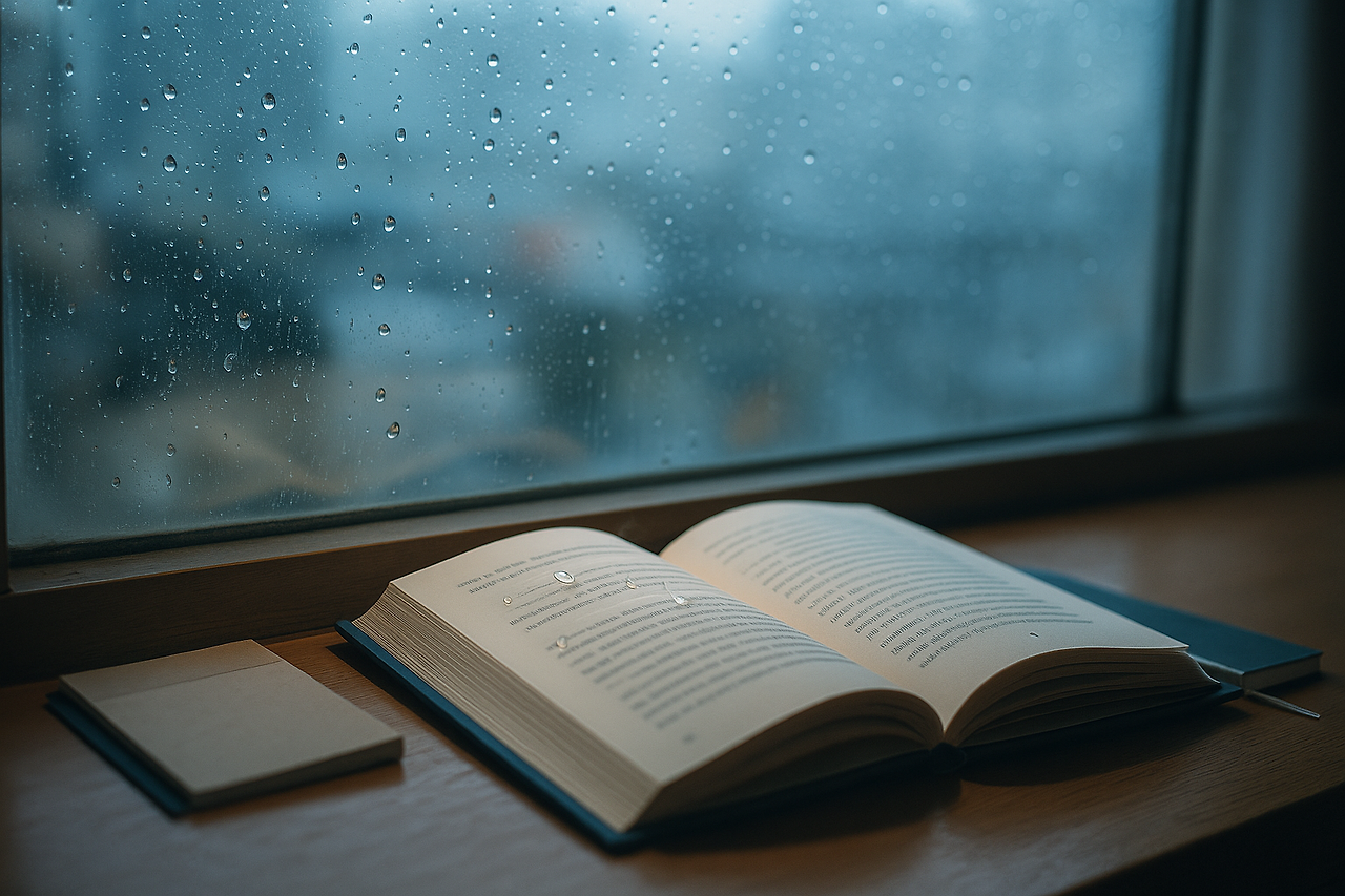 침대에 눕기 전, 창틀에 손바닥을 한 번 더 올려 본다. 낮보다 차갑다. 그런데도 마음은 조금 따뜻하다. 책을 좋아하는 이유를 다시 생각해보았다. 책은 비를 멈추게 하지는 않지만, 비 사이의 간격을 보게 한다. 그 간격을 보거 있노라면 급하지 않다. 서두르지 않으면 더 멀리 간다. 나는 눈을 감고 낮에 적어 둔 단어를 마음으로 한 번 더 읽는다. ‘사이.’ 내일 비가 그치든, 더 내리든, 그 단어는 내일의 모양을 조금 바꿔 줄 것이다.