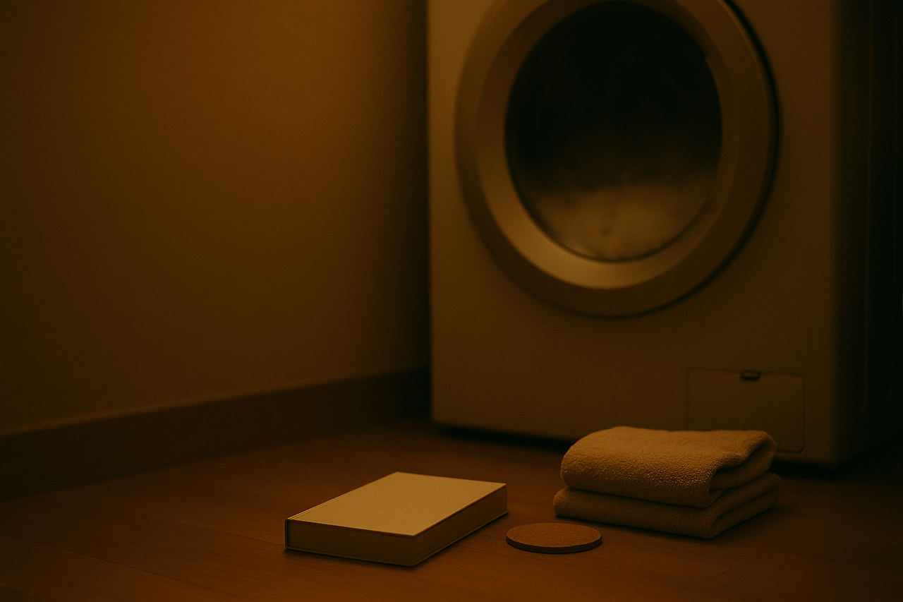 바닥에 앉아 책을 펼친다. 발바닥으로 미세한 진동이 오른다. 드럼통이 천천히 도는 첫 구간, 거품이 얇은 띠를 만들고, 띠가 문창 유리 가장자리에서 별처럼 흩어진다. LED에 찍힌 숫자는 56, 55, 54로 내려간다. 숫자는 줄어드는데 마음은 오히려 늘어난다. 둔한 리듬이 긴장을 받아내고, 그 위에 문장들이 안착한다. 빨래는 안으로, 나는 안쪽으로.